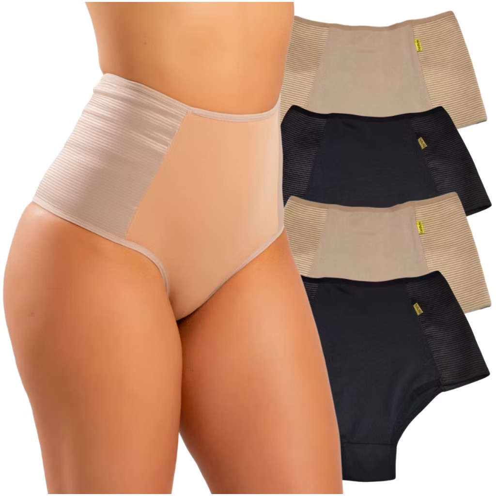 Kit 4 Calcinhas Cinta Modeladora Suplex Plus Size Pós Parto e Cirúrgico Alta Pressão Moda Intima