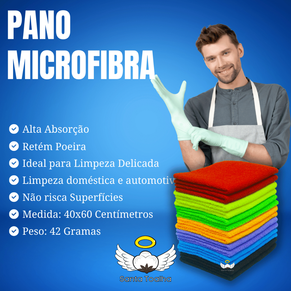 Kit C/ 5 Panos Microfibra 40x60 limpeza em Geral Multiuso