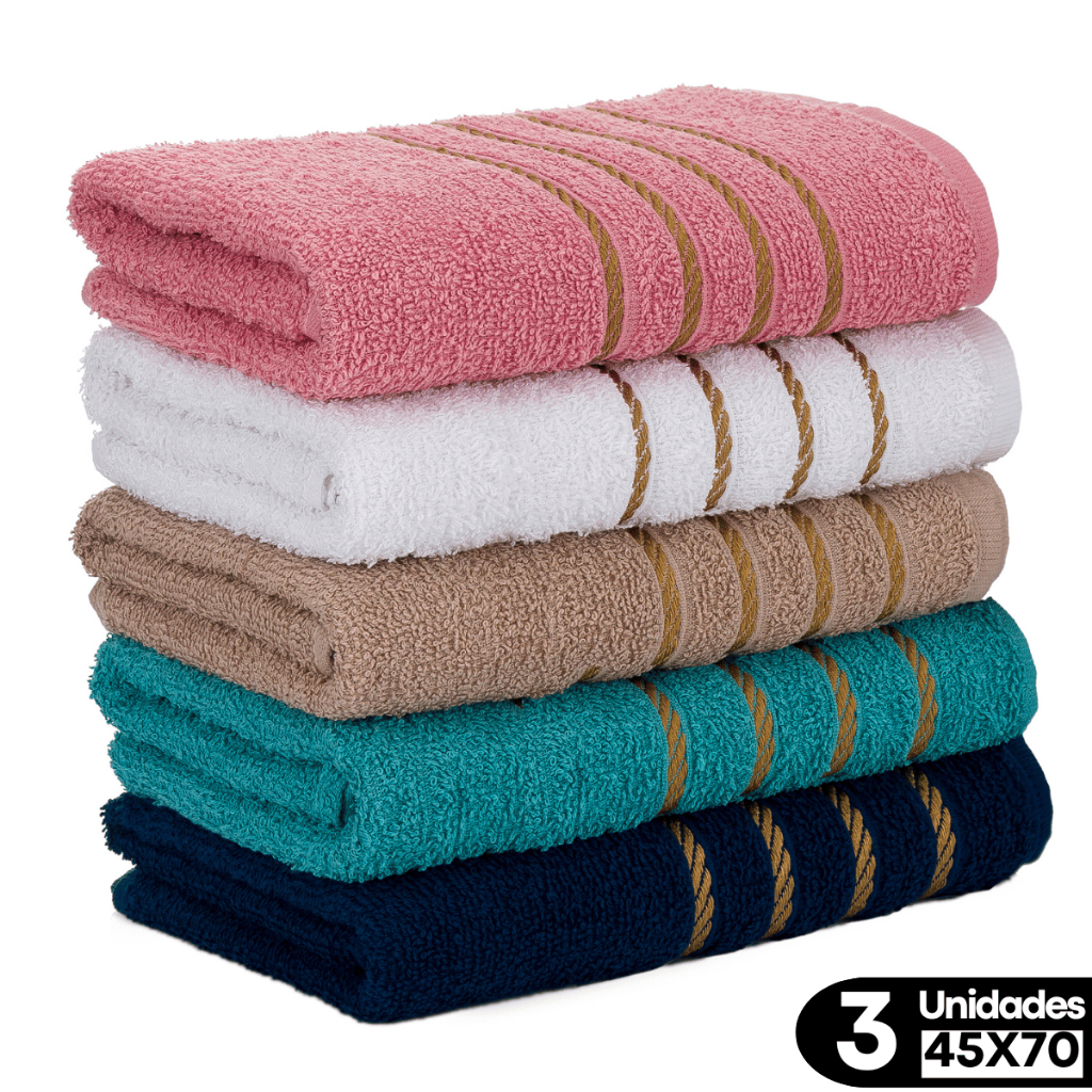 Kit 3 Toalhas de Rosto Fio Dourado 45x70 100% Algodão