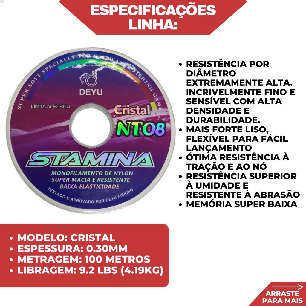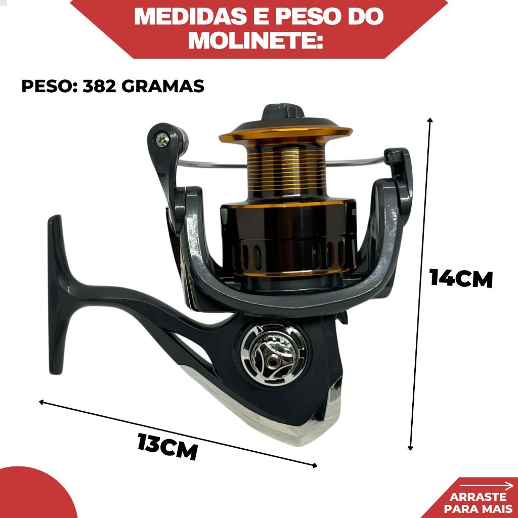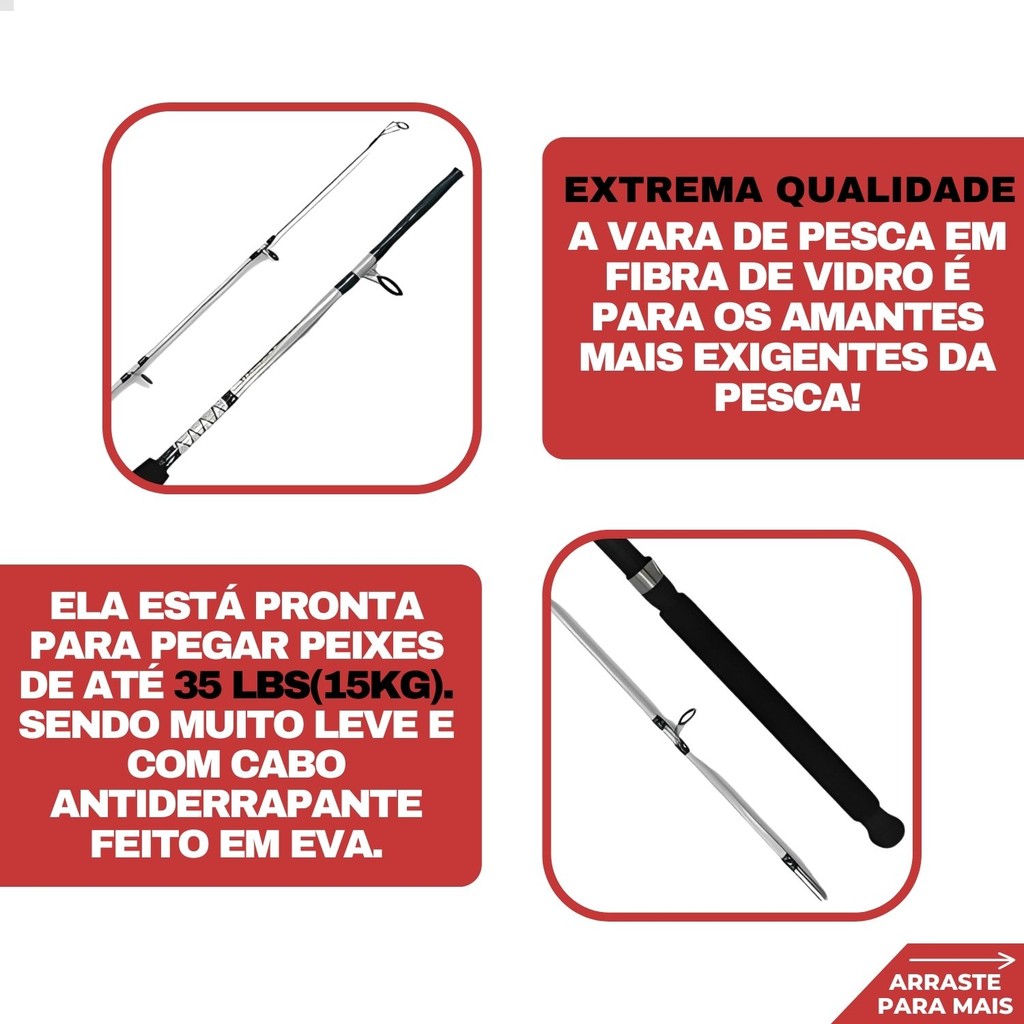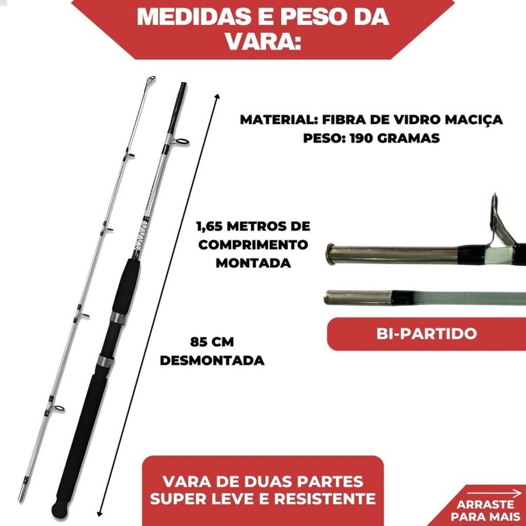 Kit Pesca Vara 1,65 Sólida 15Kg e Molinete 7000 + Linha 100m