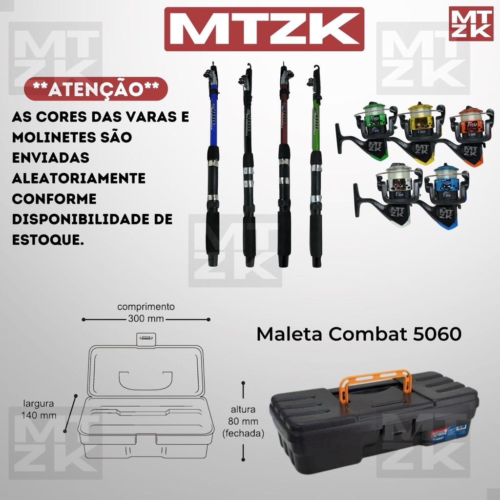 Kit Pesca 4 Vara + 4 Molinete Maleta Acessorios Promo Barato