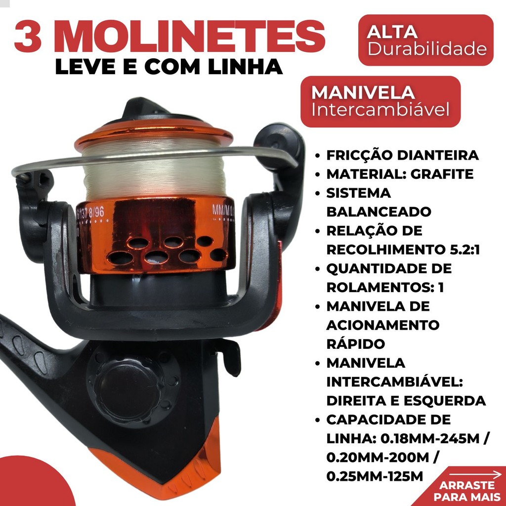 Kit 3 Molinetes Pesca Com Linha Ultra Light Atacado Revenda