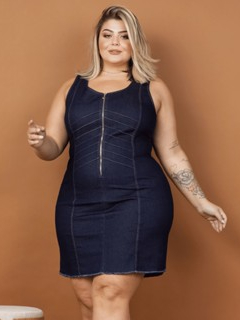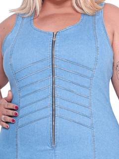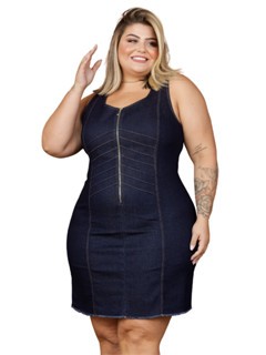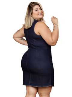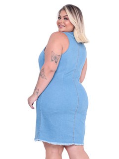 Vestido Jeans Feminino Plus Size Tubinho com Lycra Coladinho Cavado Curto