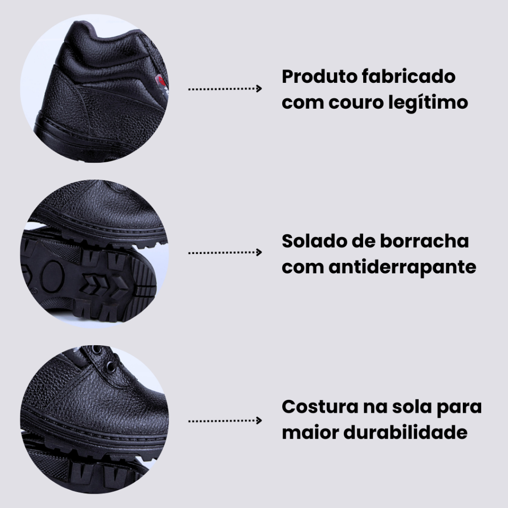Calçado de Segurança Com CA - Bota Preta De Amarração com Biqueira de PVC Barata