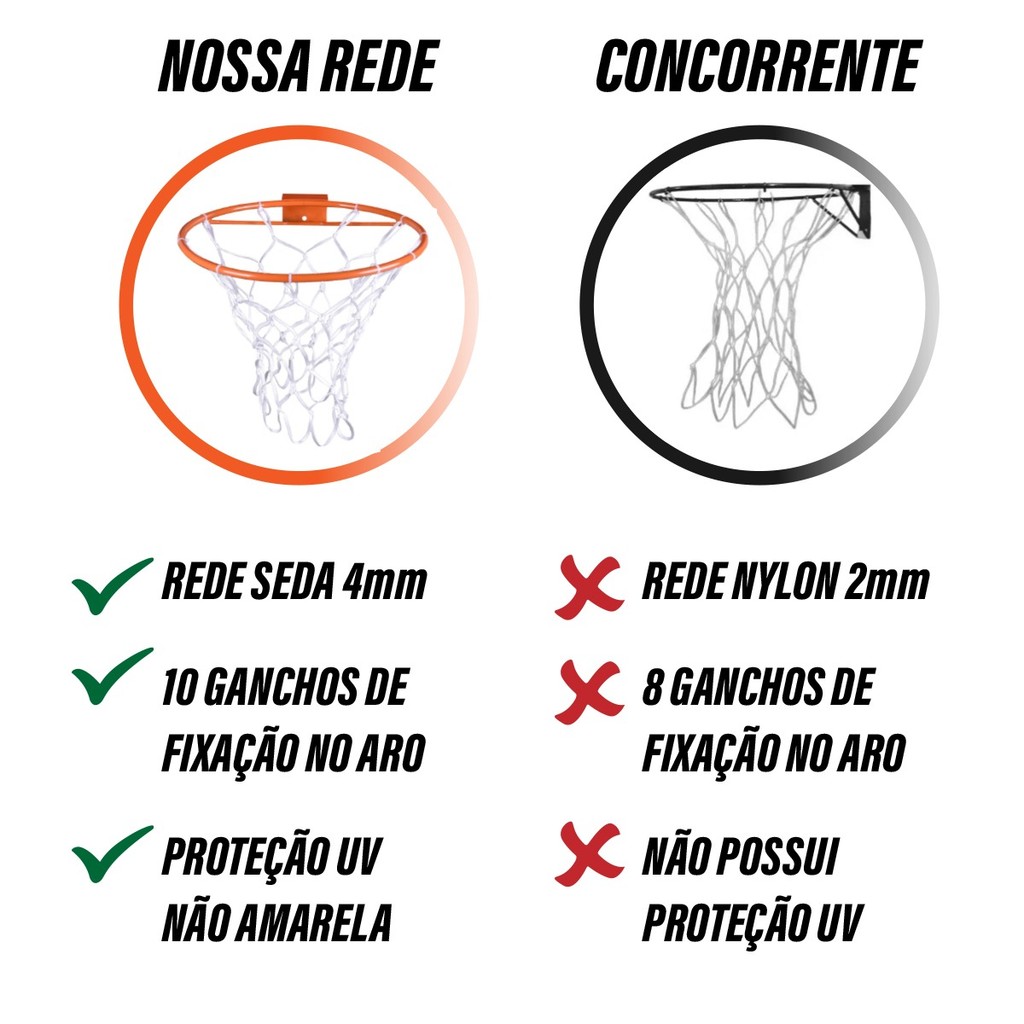 Rede Para Aro Cesta de Basquete Fio de Seda Chuá 4mm Alta Durabilidade Uso Externo e Recreativo