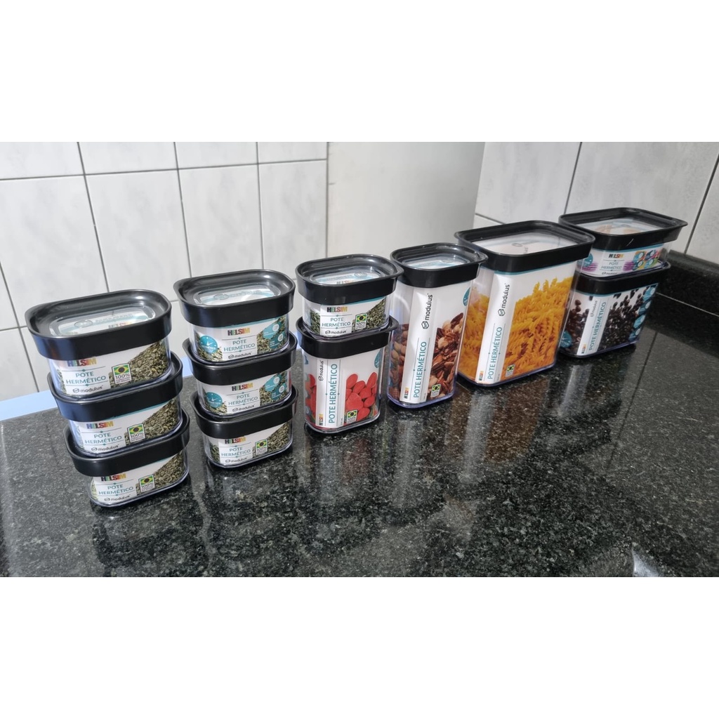 Porta mantimentos e temperos para cozinha Kit com 12 potes (Todo o conjunto são herméticos)