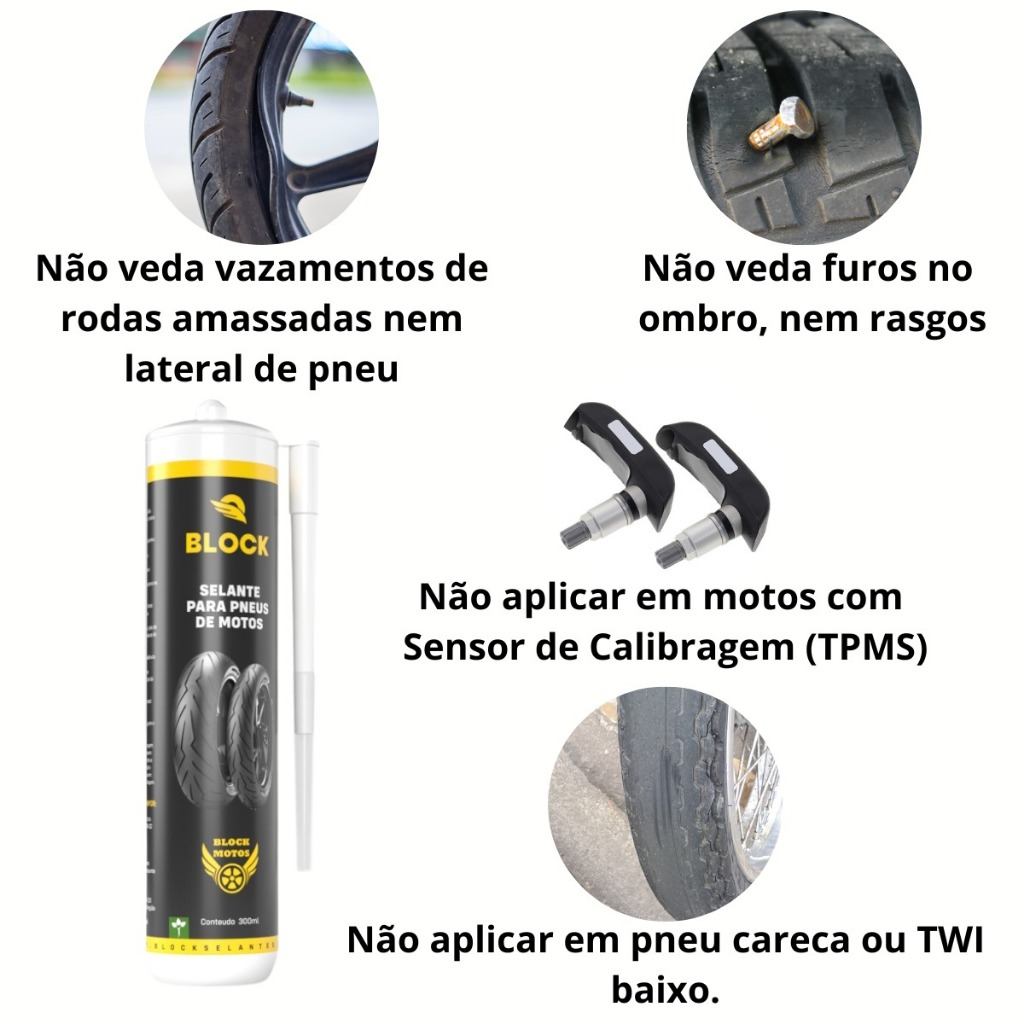 Selante Para Pneu De Moto Block 300 Ml 2 Frascos - Vacina Selante Pneu Antifuro