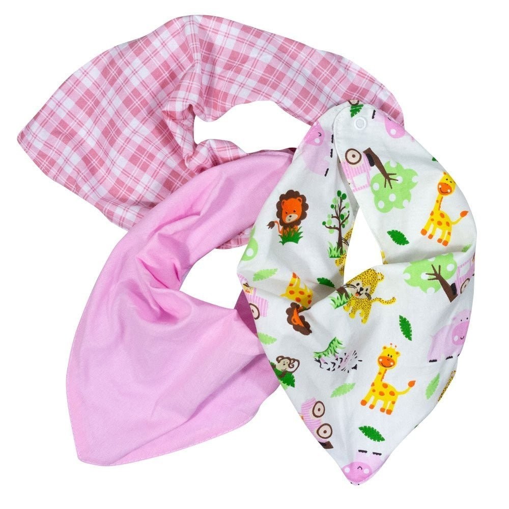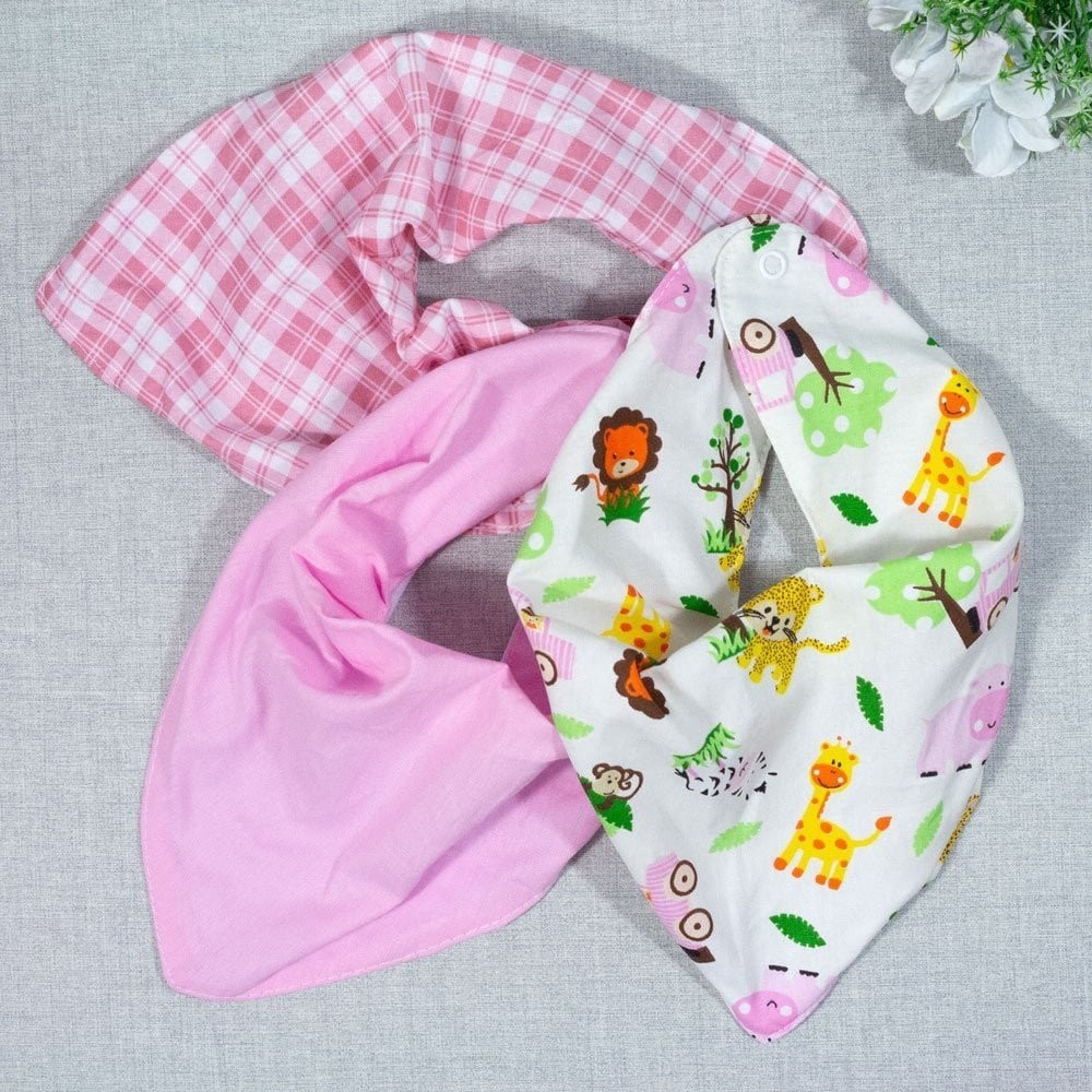 Kit 3 Babadores Para Bebê Bandana Estampadinhos Safari