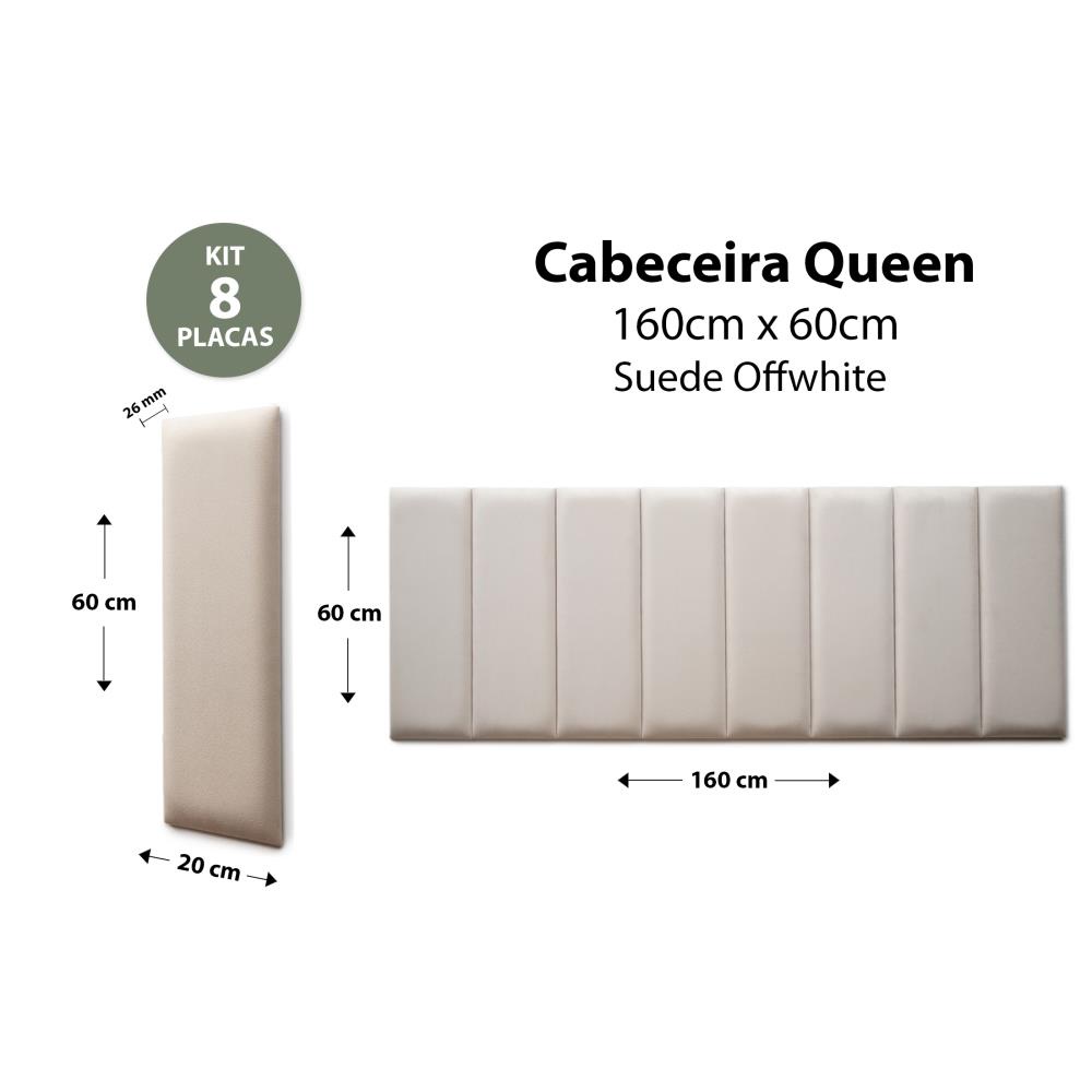 Placas Cabeceira Modulada Adesiva Queen Estofada 160cm x 60cm Kit 8 Placas - Suede Off White