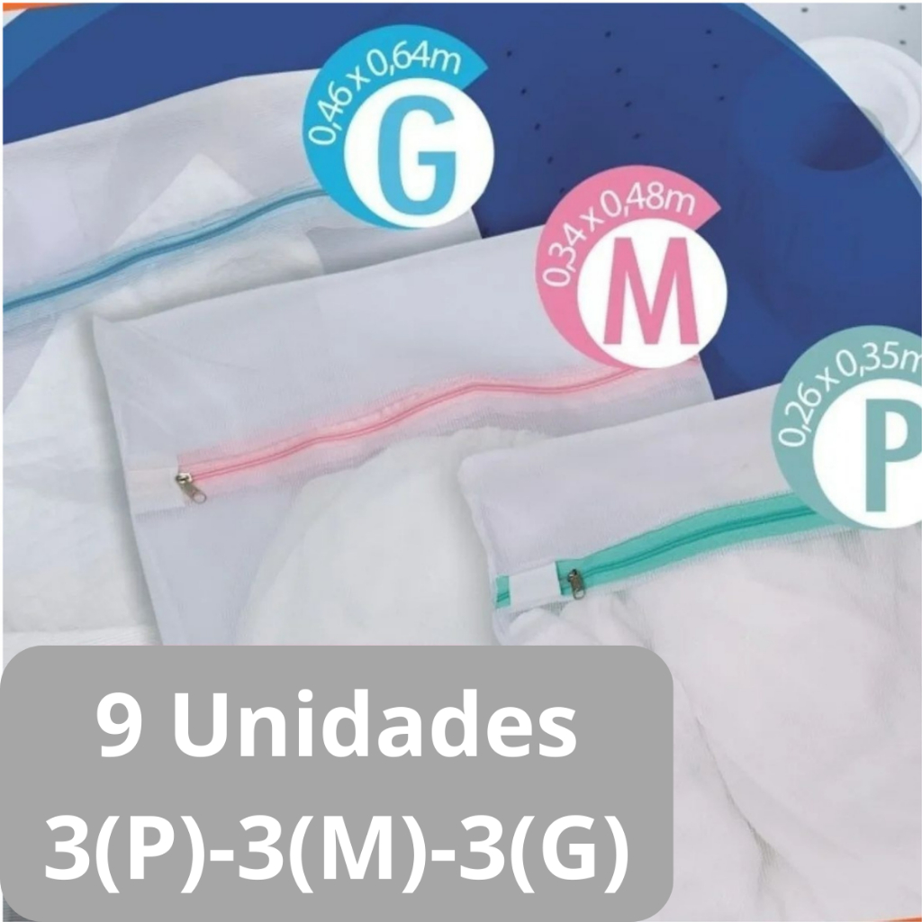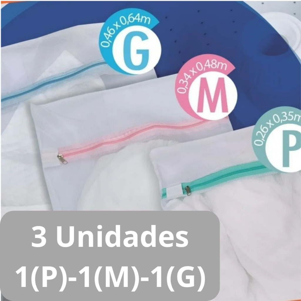 Kit com 3 Sacos para lavar roupas (P, M, G) Protetor De Lingerie Roupa Íntima Tecido Papa Bolinha