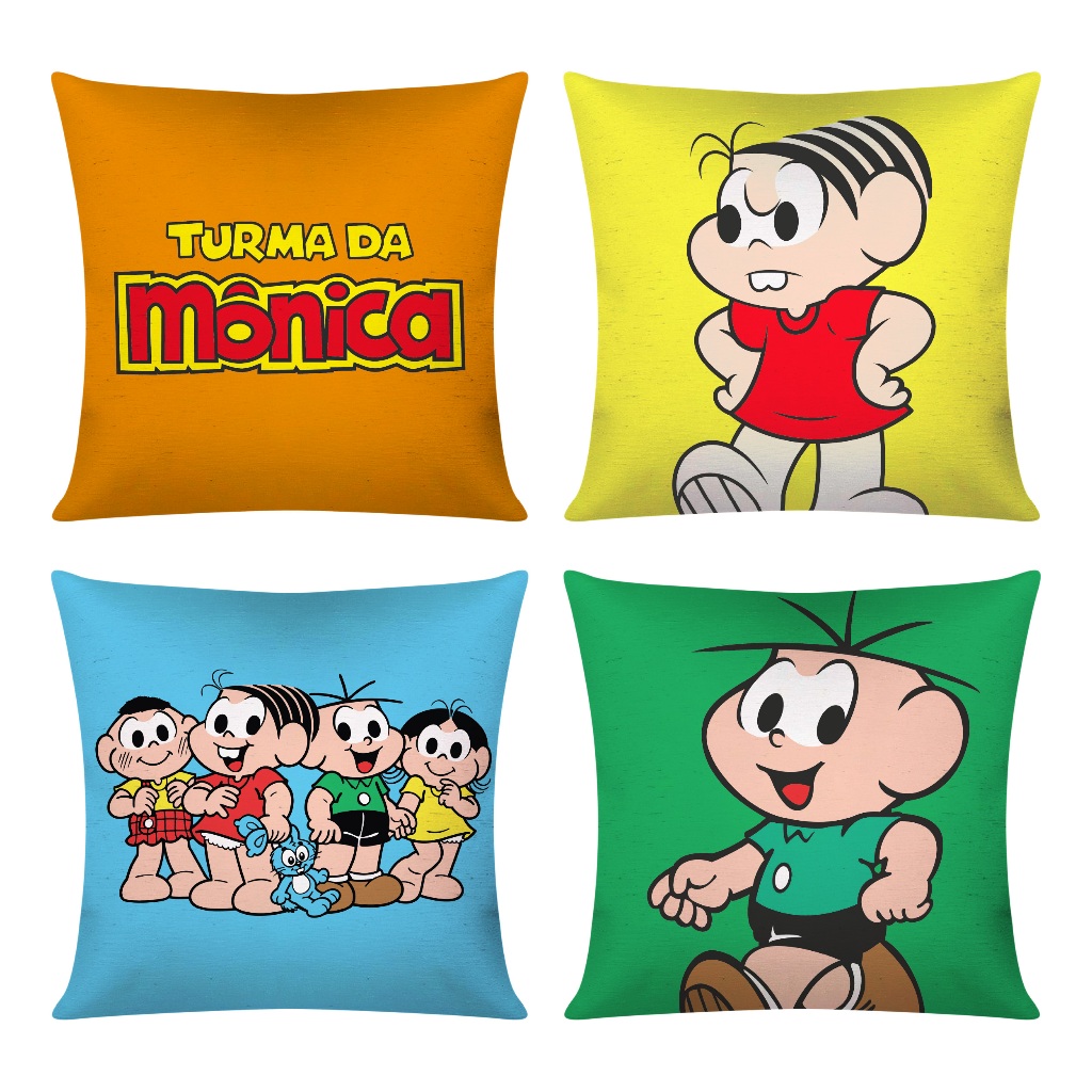 Kit c/ 4 Capas de Almofada Decorativas Modern Print Personagens 45x45 - Turma da Mônica