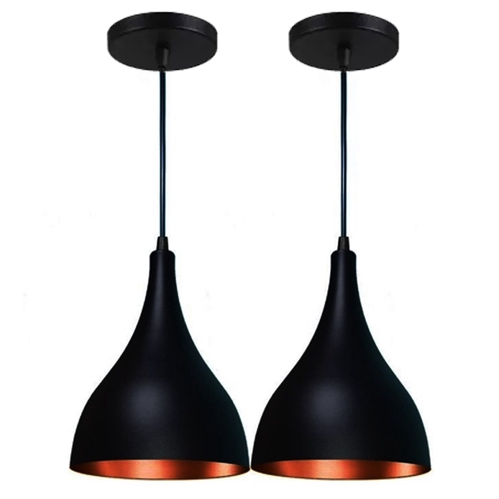 Kit 2 Lustre Pendente Gota Preto Fosco com Cobre