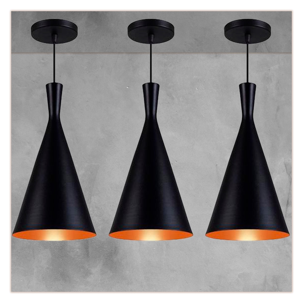 kit 3 Lustres Pendentes Estilo Tom dixon preto/cobre