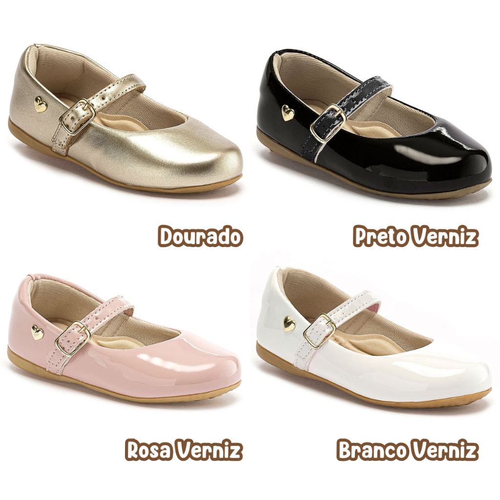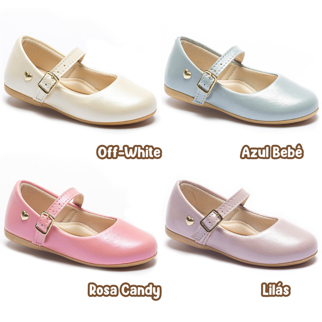 Sapatilha Infantil Menina com Enfeite Coração 8 Cores Tamanho 20 ao 27 Sapekitos