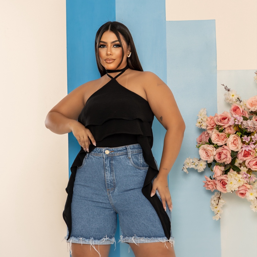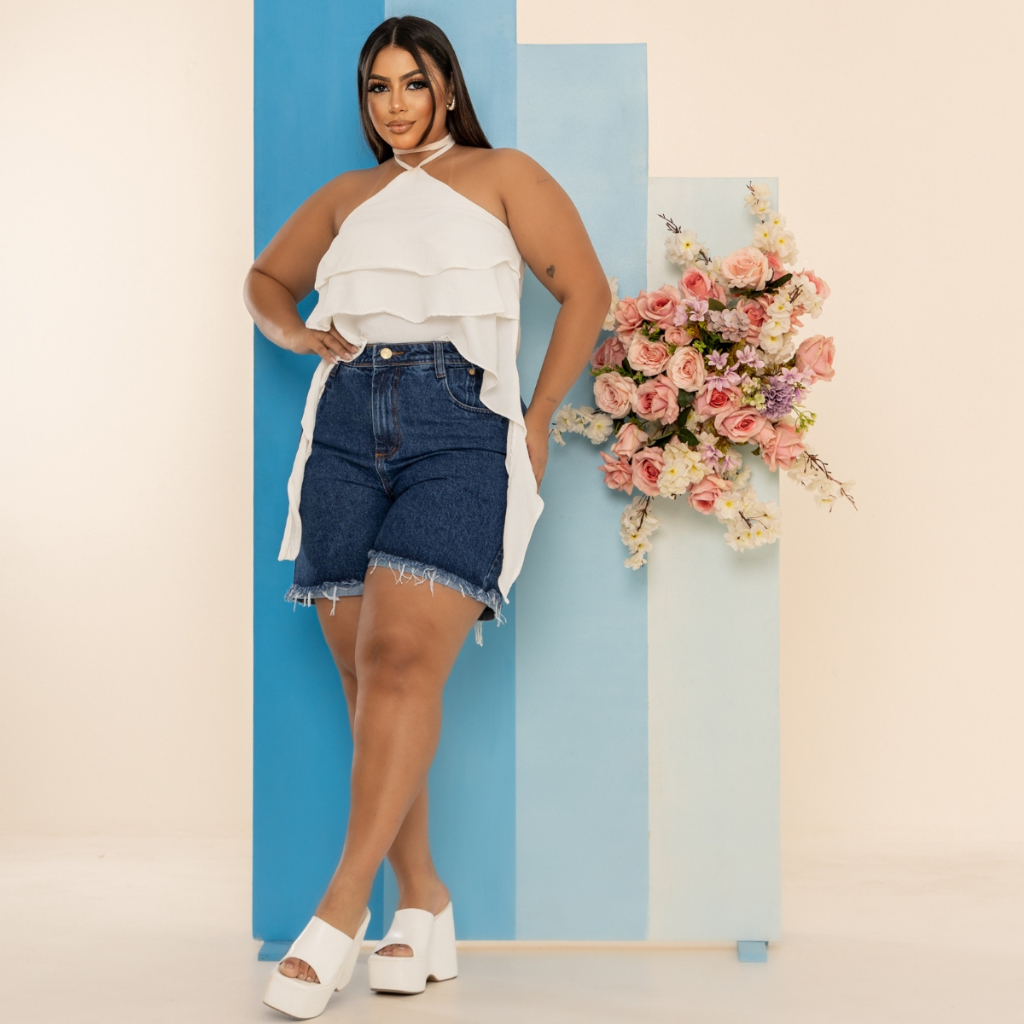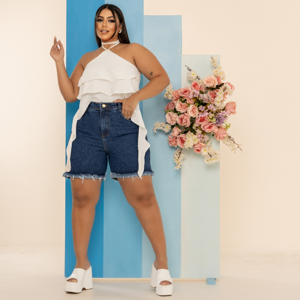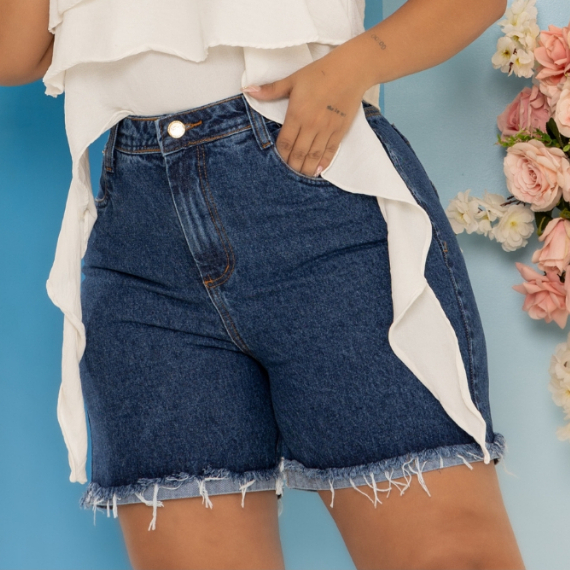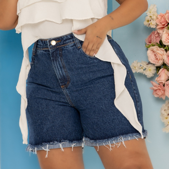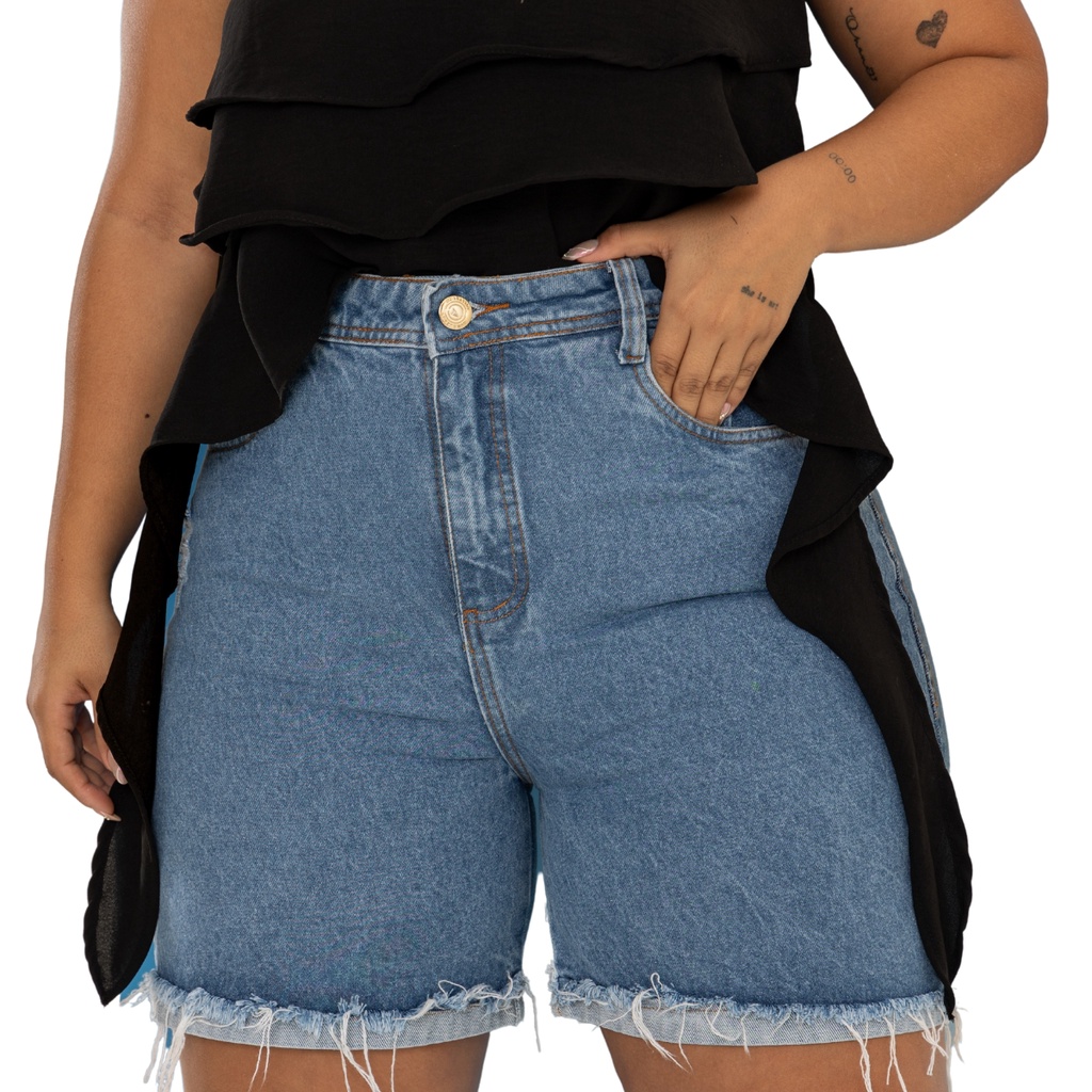 Short Jeans Bermudinha Plus Size Barra Feita Rasgado Moda