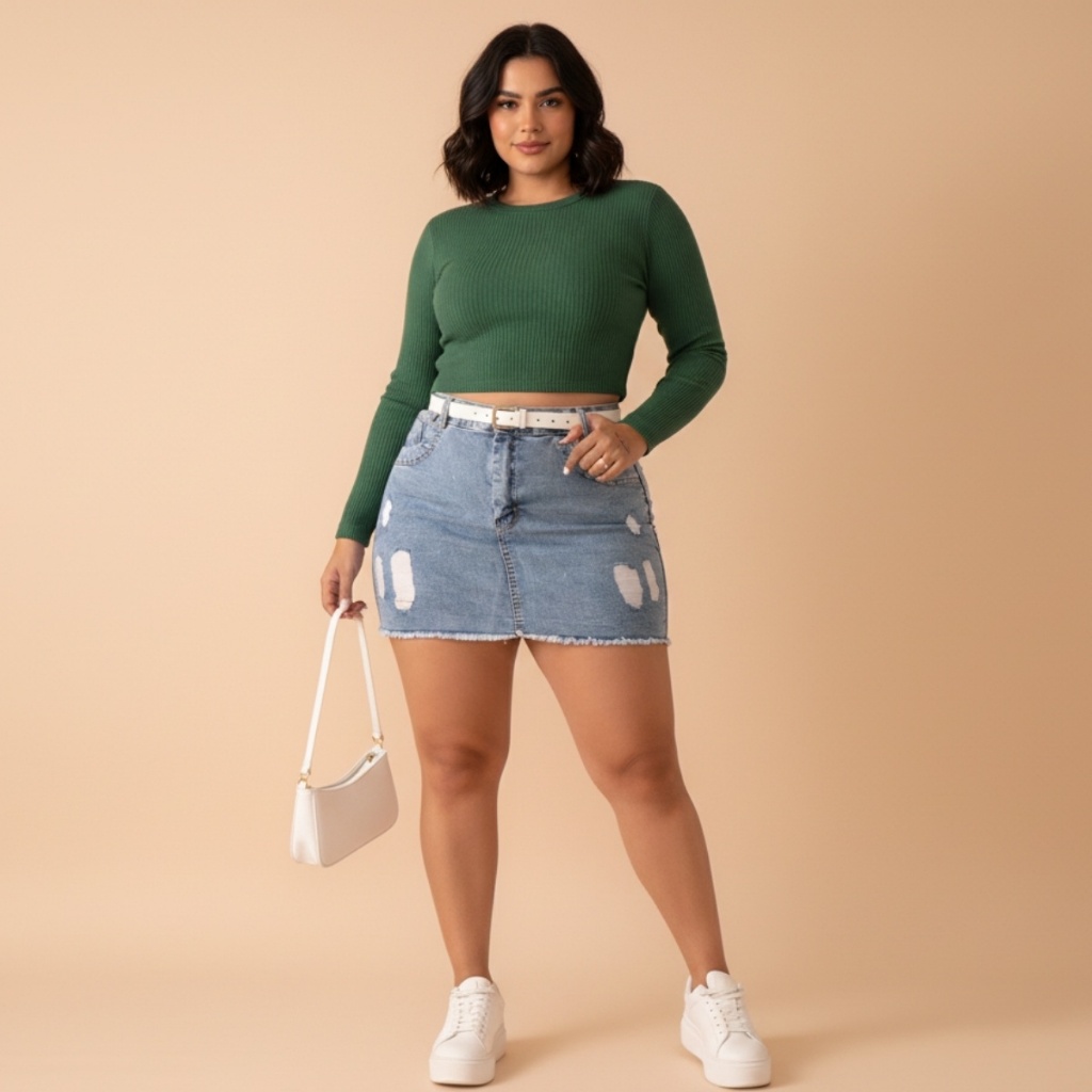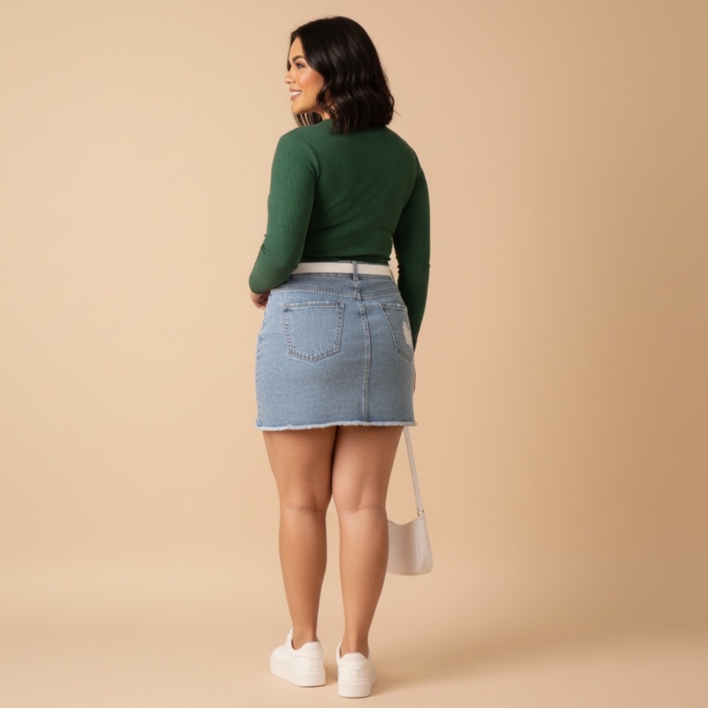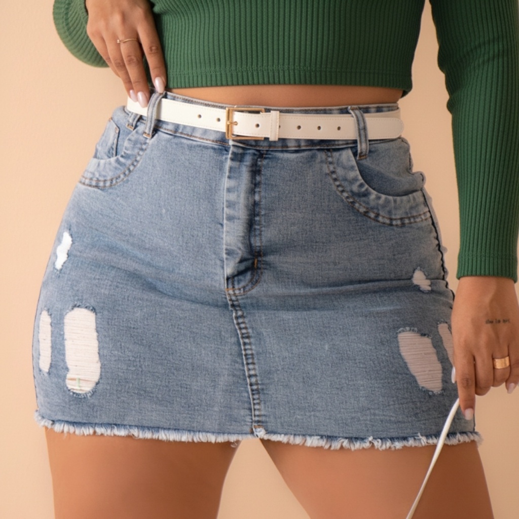 Saia Jeans Feminina Plus Size Barra Desfiada Cintura Alta