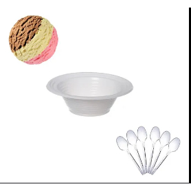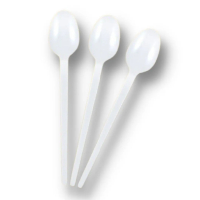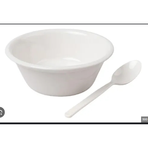 Kit Cumbuca Branca + Colher de Refeição Cristal – 100 Unidades de cada