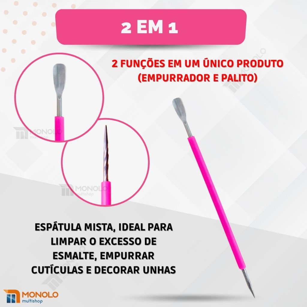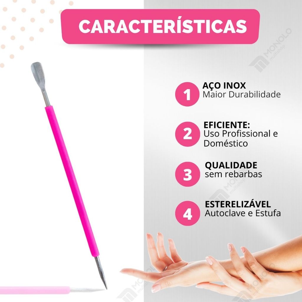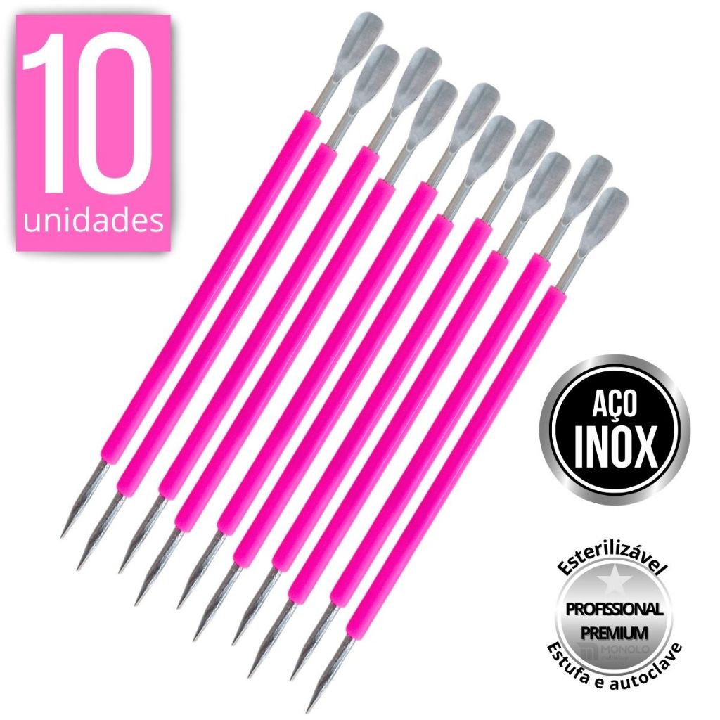 Kit 10 Espátula c/ Palito Bastão Mista Silicone Cutelaria Empurrador Curvo Unha Aço Inox Monolo