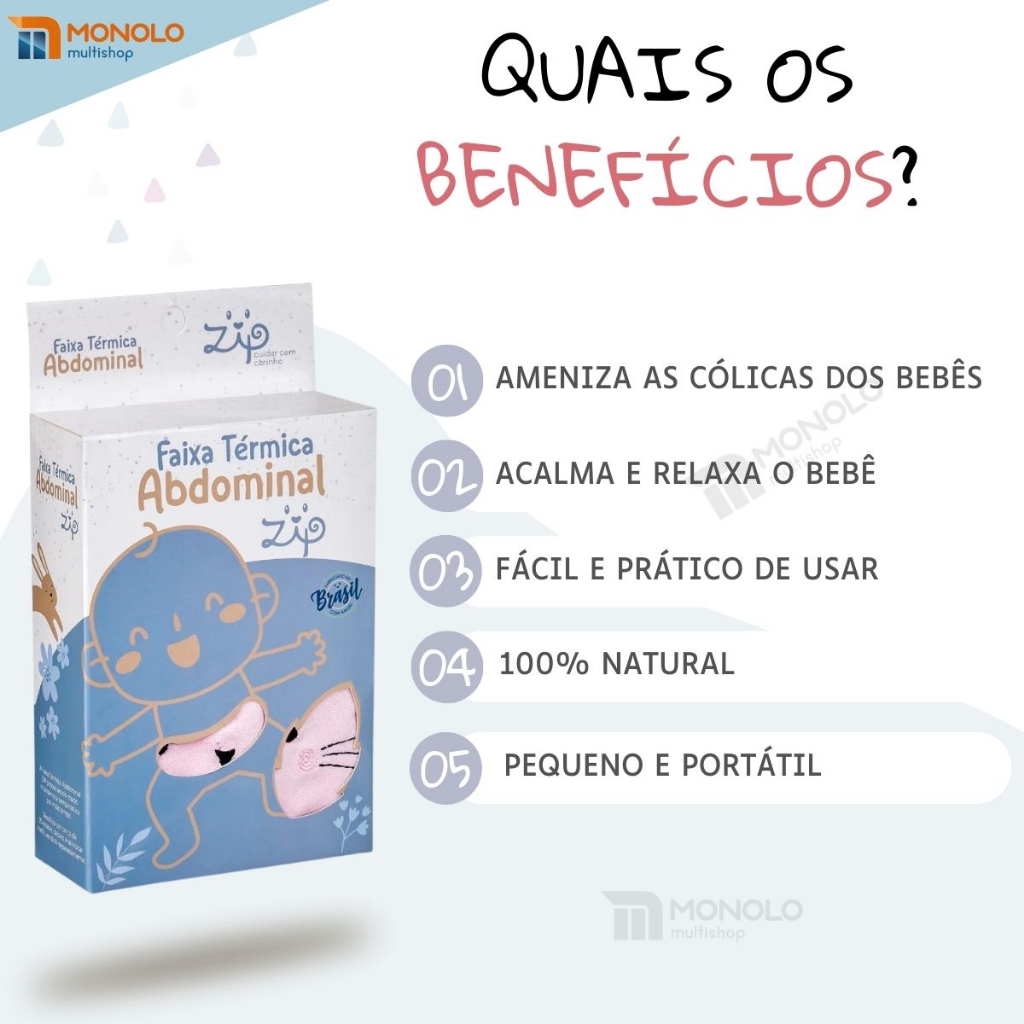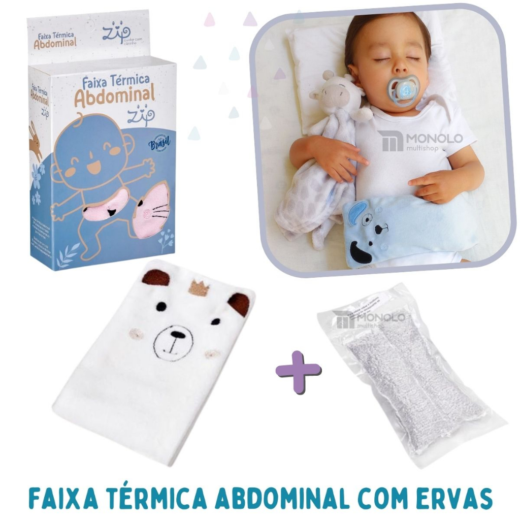 Cinta Térmica Alivia Cólica Dor Barriga Bebe Nenê c/ Bolsa Semente Erva Anti Gases Conforto
