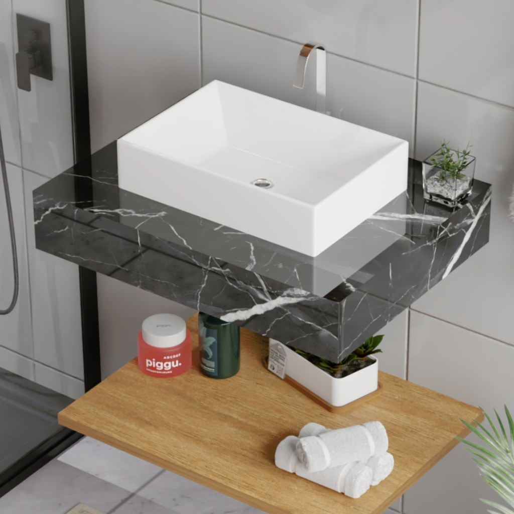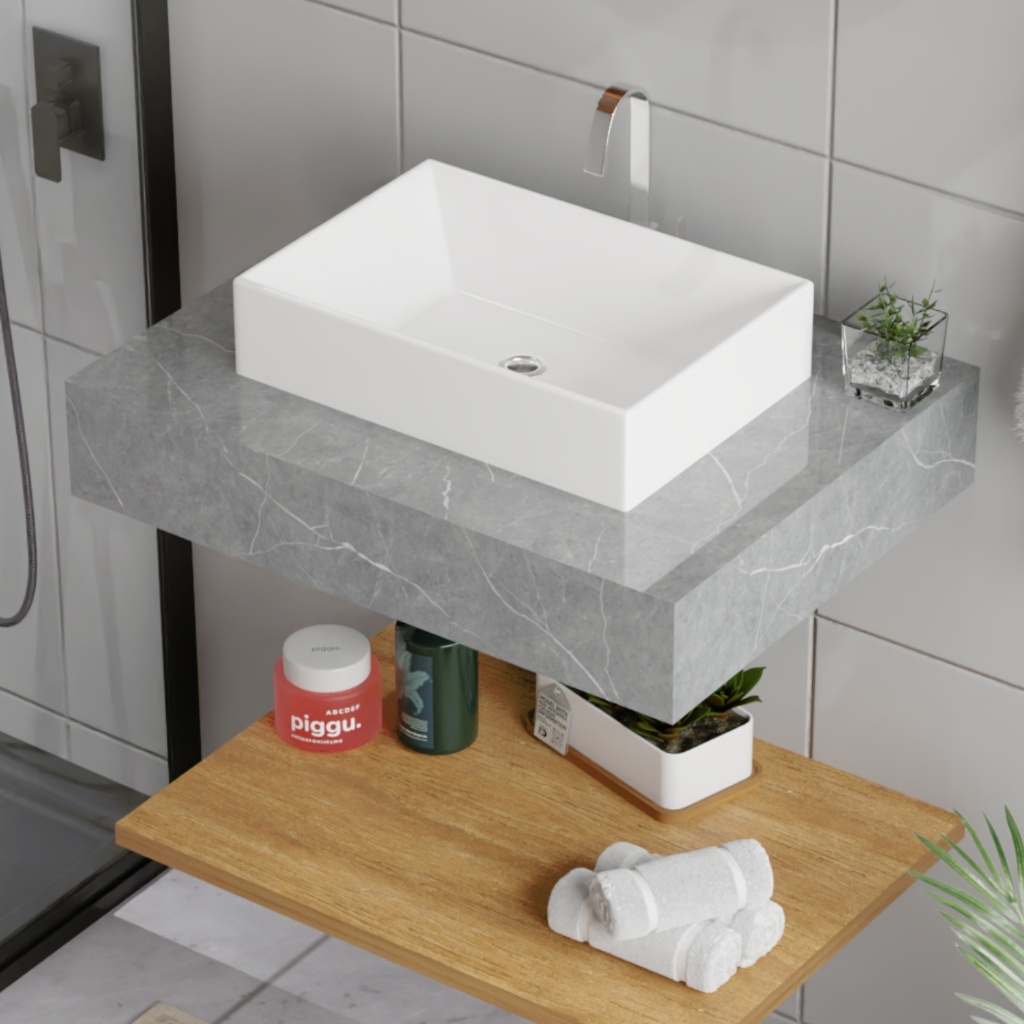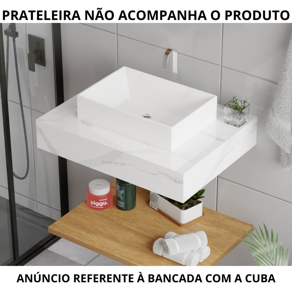 Bancada de Porcelanato Com Cuba de Apoio e Kit de Instalação Elite 62x40 Calacata Cuba Branca Mellstone