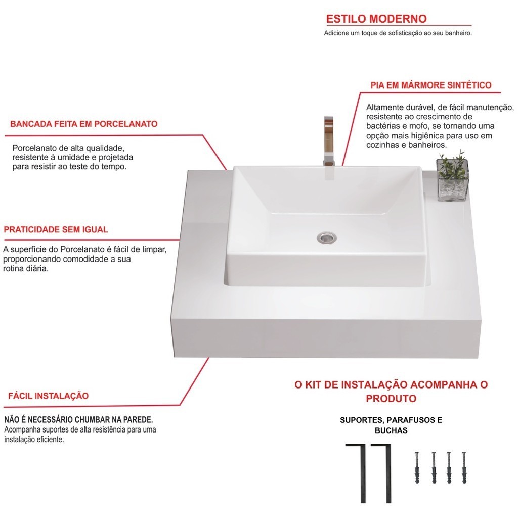 Bancada Porcelanato Elite 62x40 Branco Cuba Branca