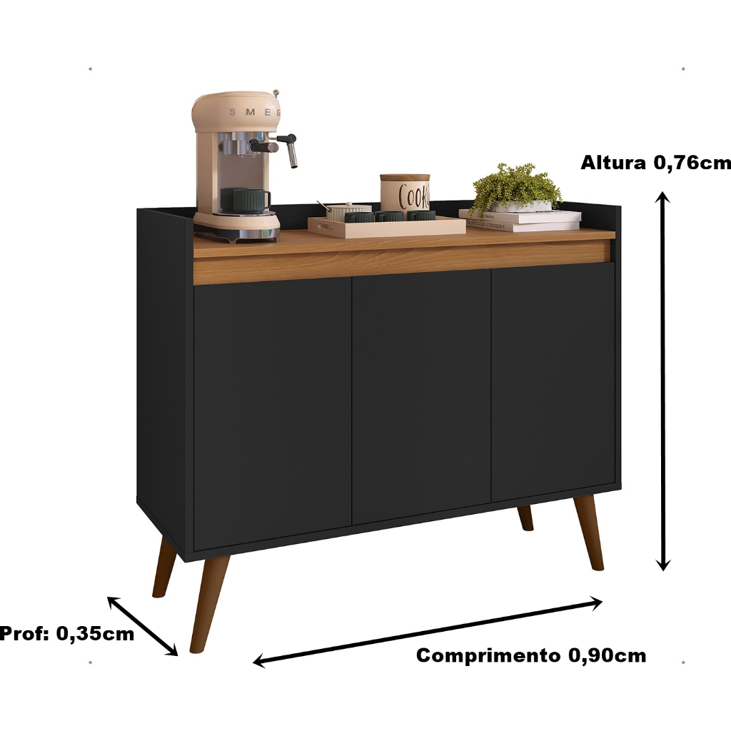 Armario Aparador Cantinho do Café Buffet Vilage 3 e 2 Portas Pés Palito Prateleira Cores
