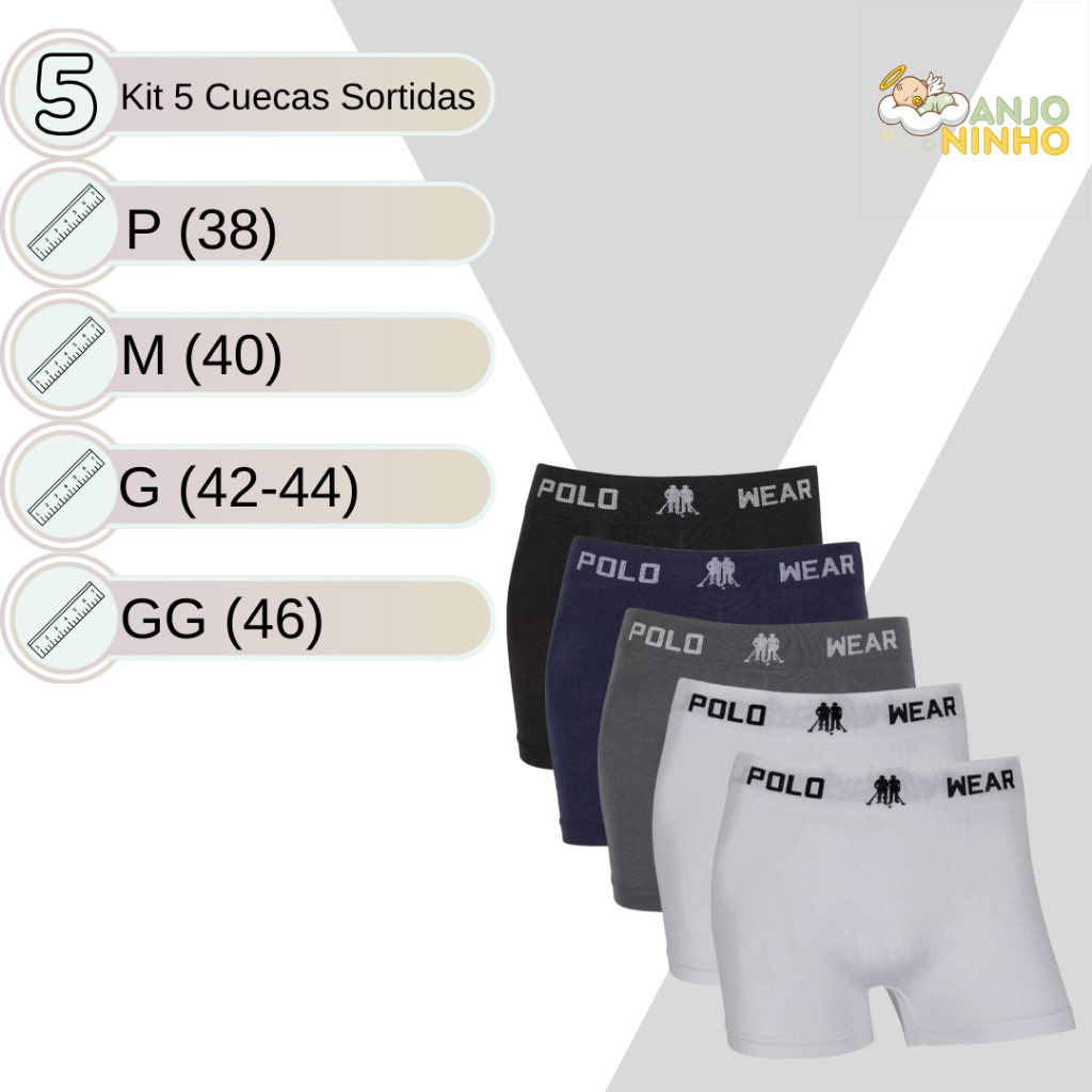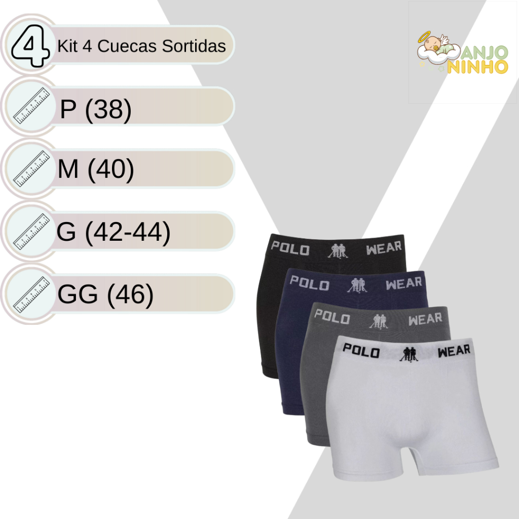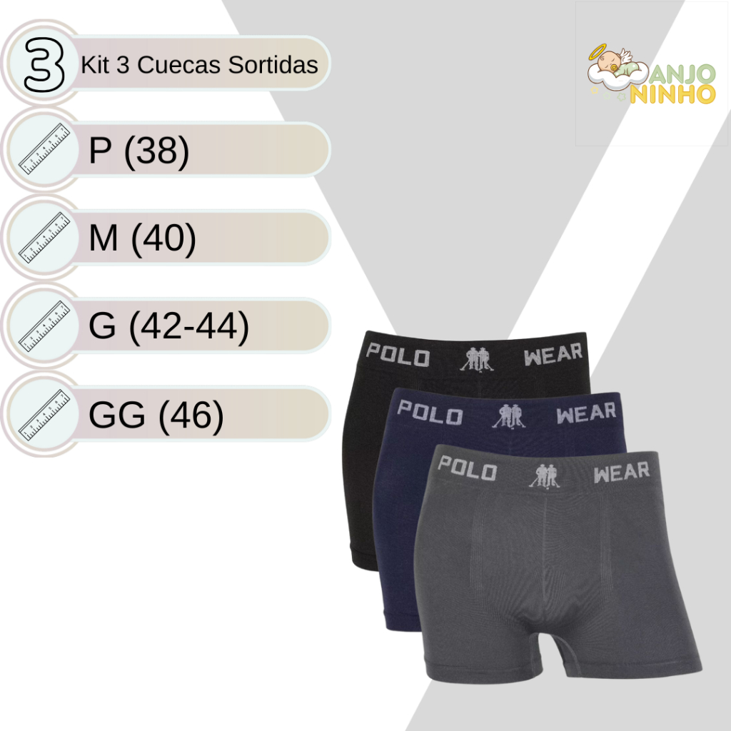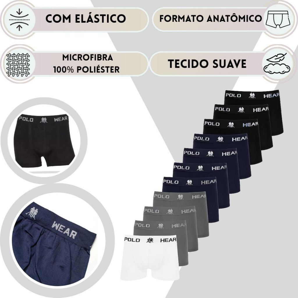 Kit Cueca Masculina Boxer Polo Wear Microfibra Leve Sem Costura Confortável Sortida