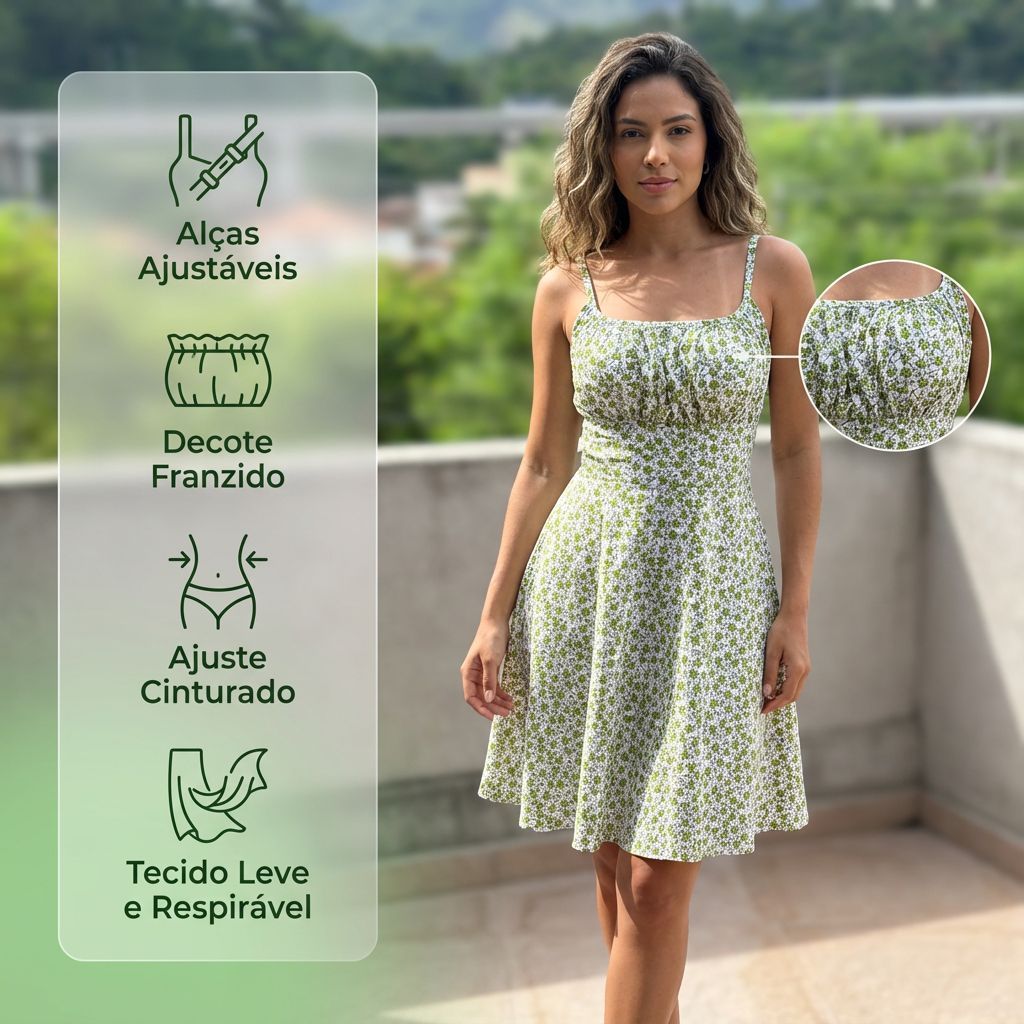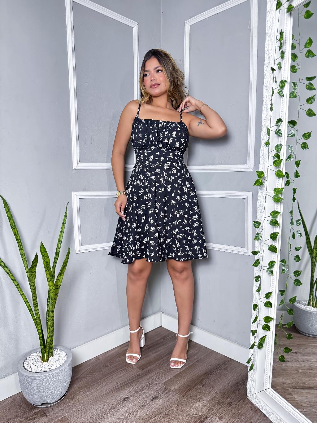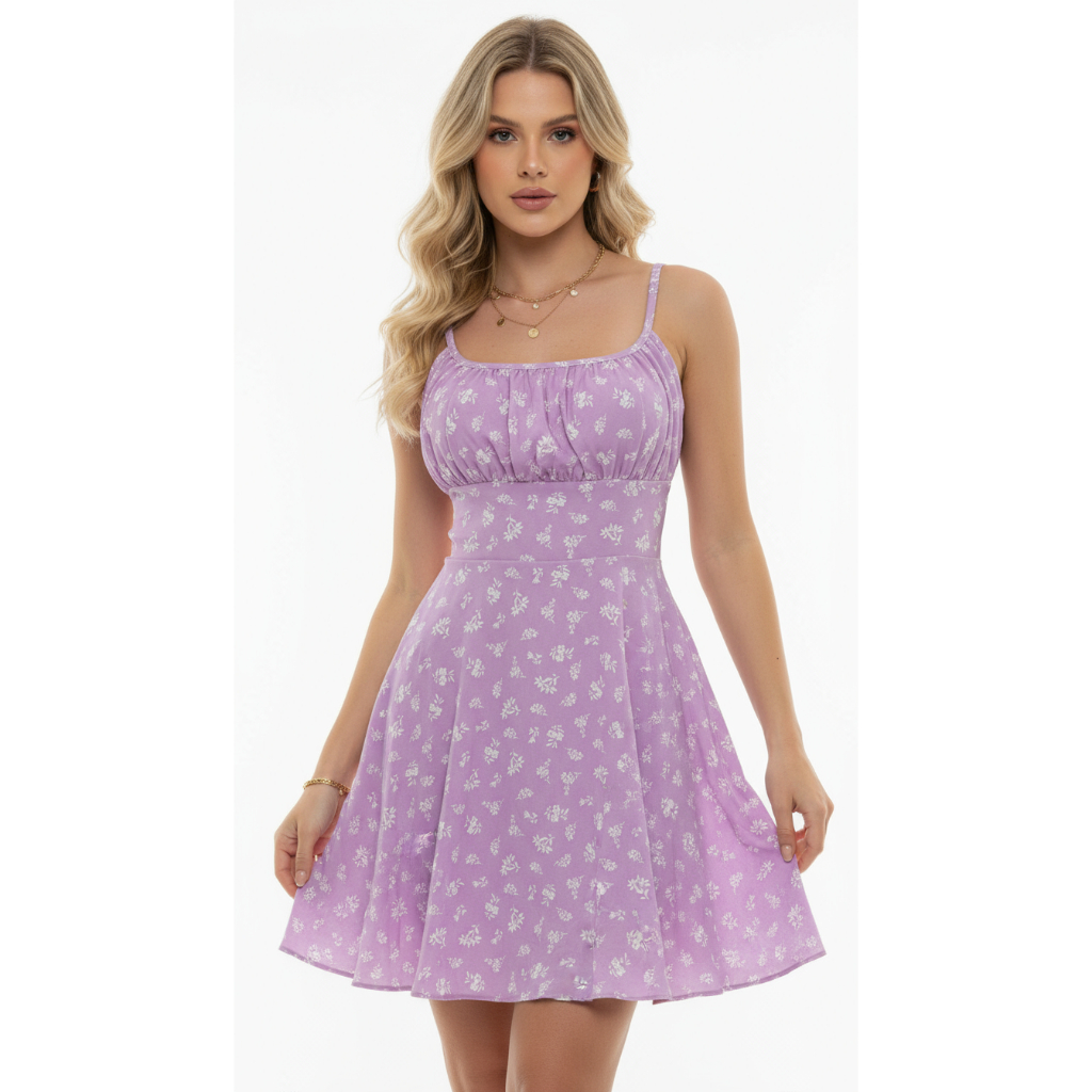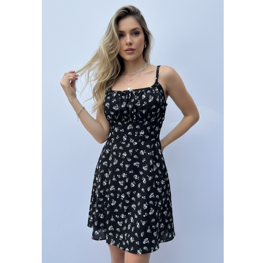 Vestido Curto Floral Feminino com Bojo, Forro e Alça Regulável elastex nas costas – Charmoso e Confortável