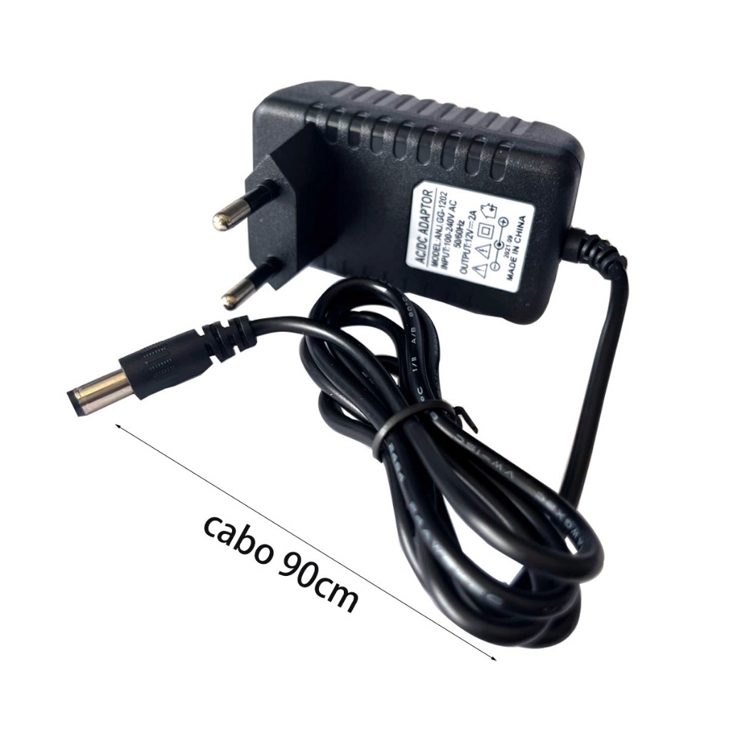Fonte 12V 2A Bivolt AC/DC Adapter 2,5mm Para Câmera Ip Speed Dome - 12v-2a
