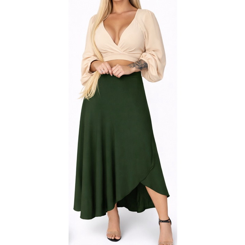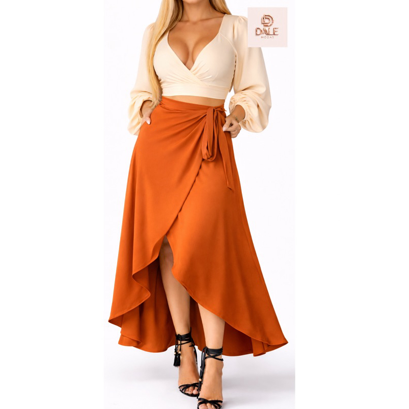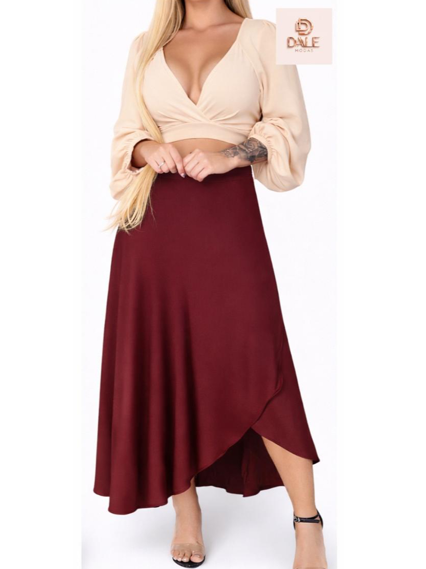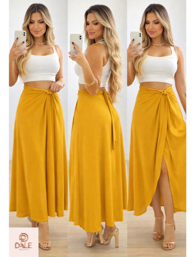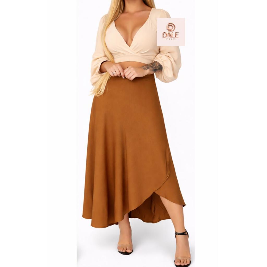 Saia Envelope Transpassada Varias Formas Midi Cintura Alta Moda Envagelica Praia Festas