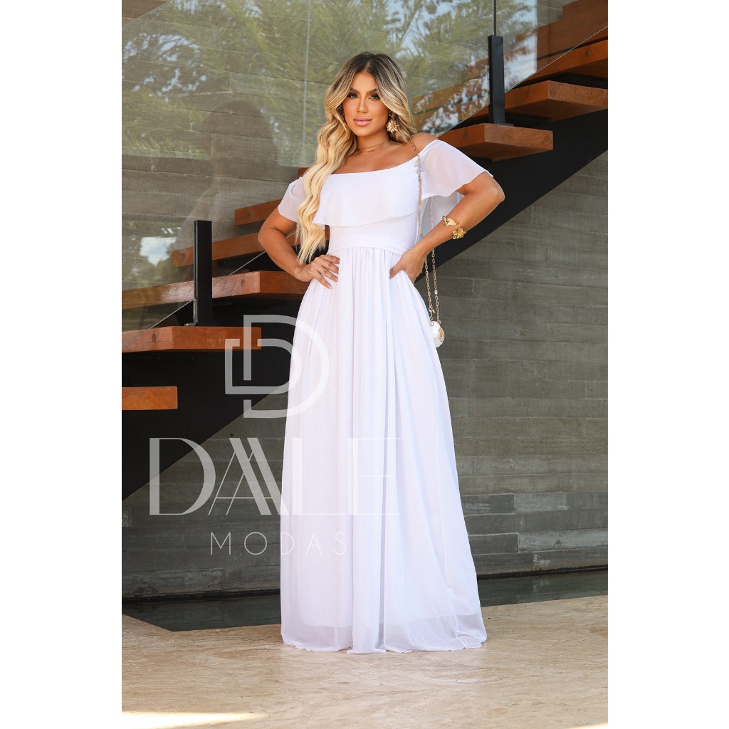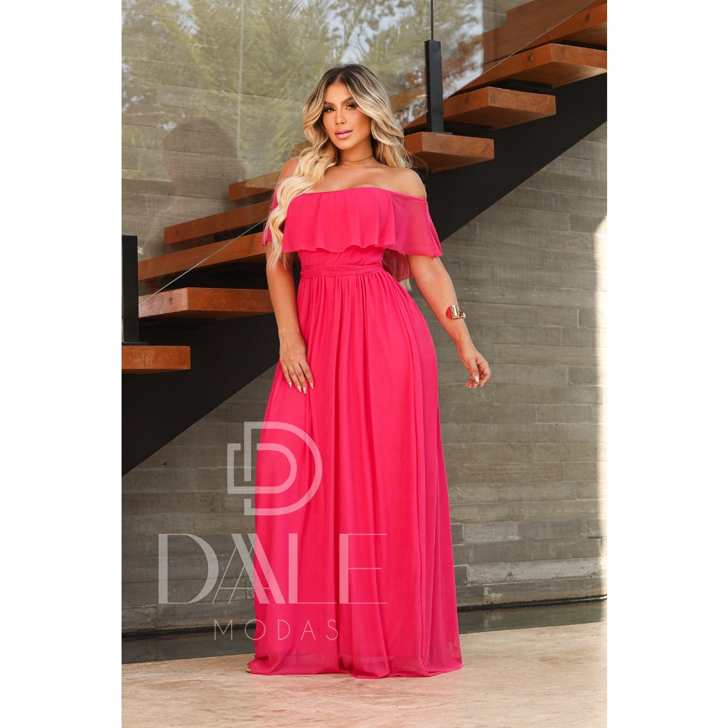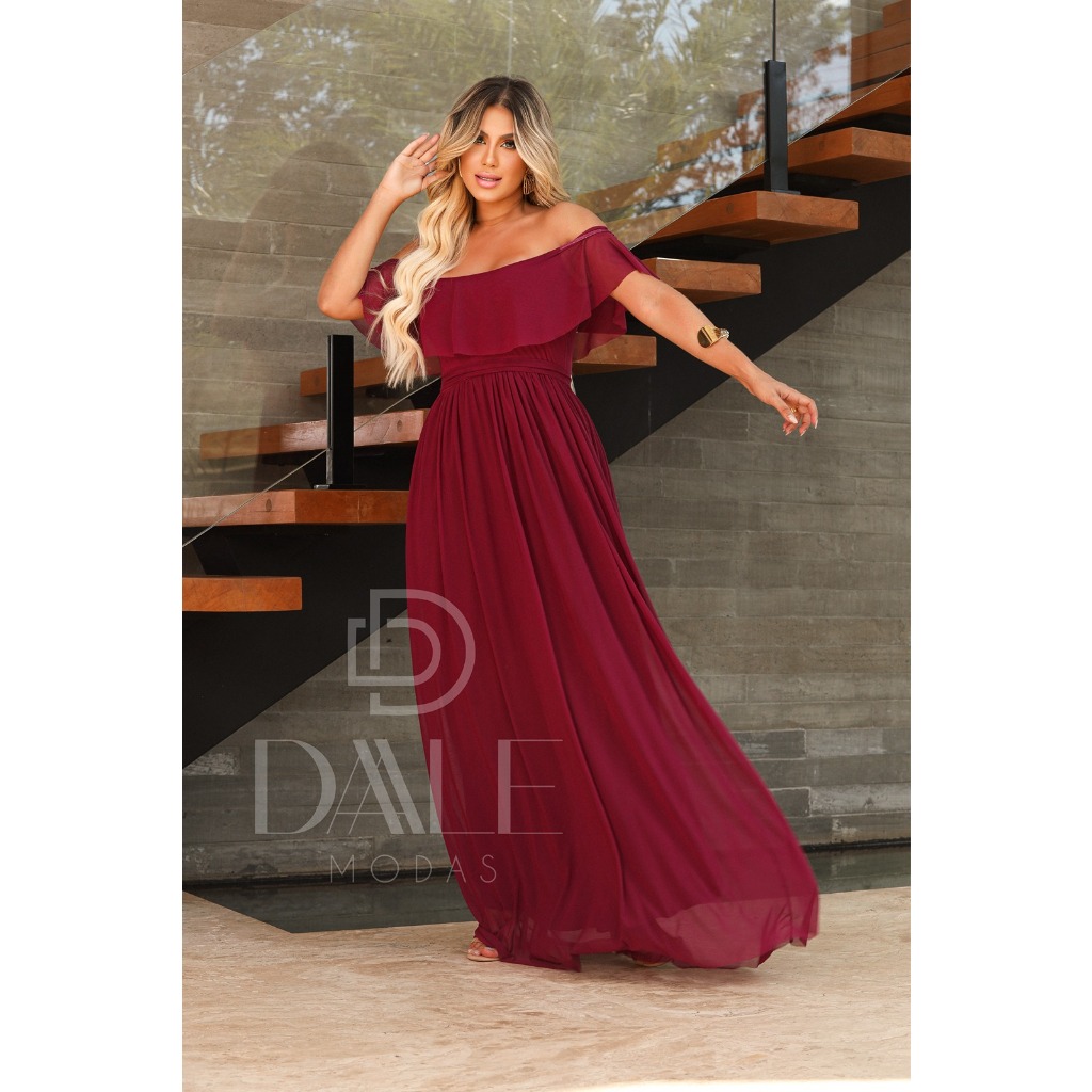 Vestido Longo feminino Ombro A Ombro Modelo Para Festas Casamentos, convidada E Eventos