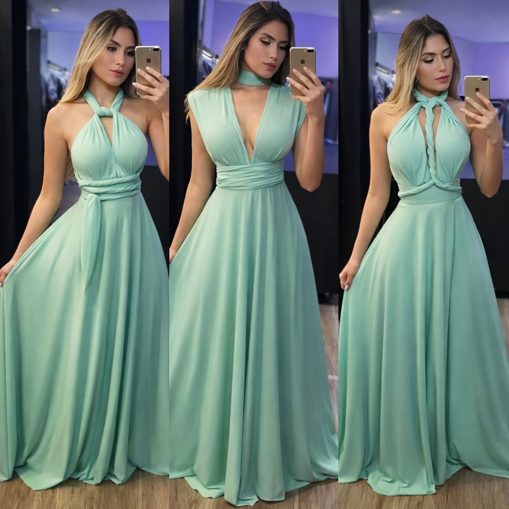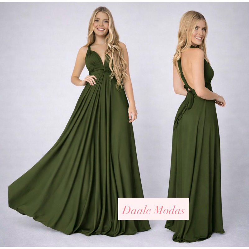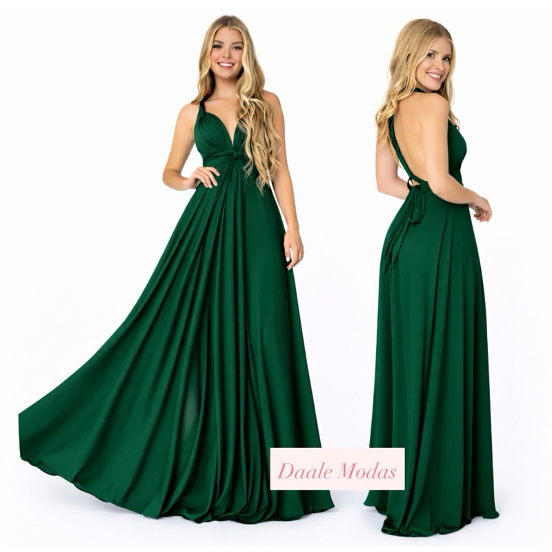 vestido Longo Várias Formas Infinity Multiformas Multiuso Festas Casamento Madrinhas Formatura verde