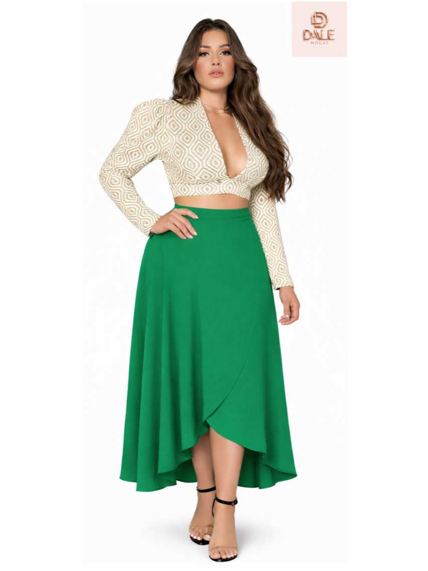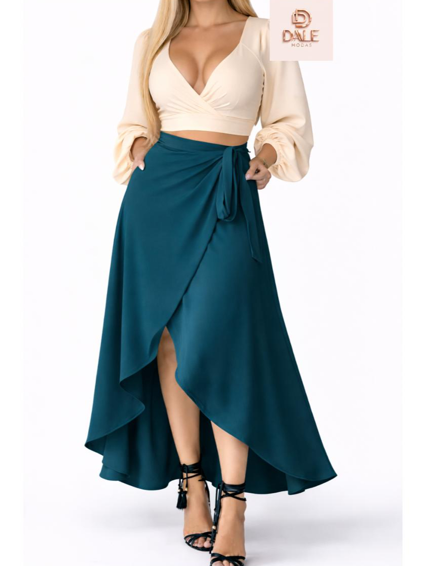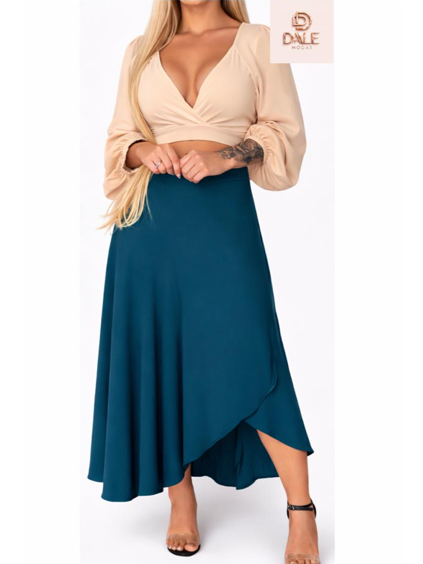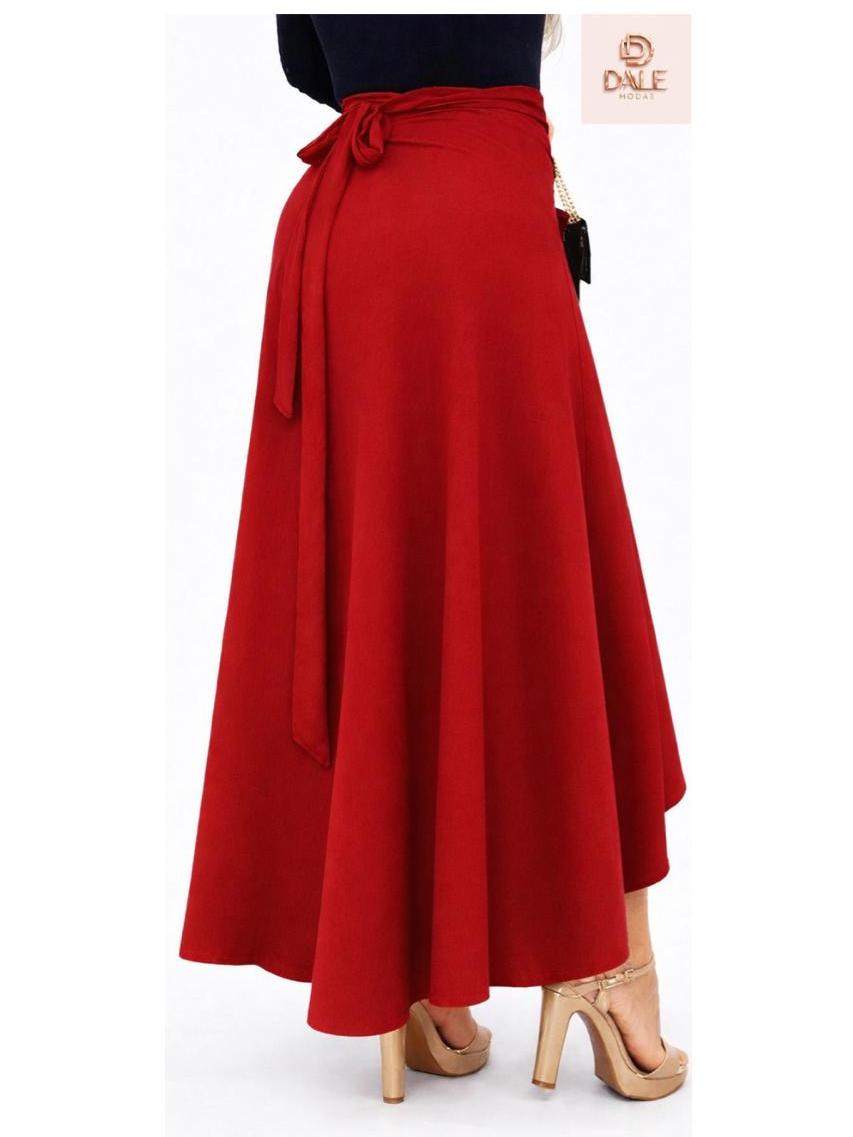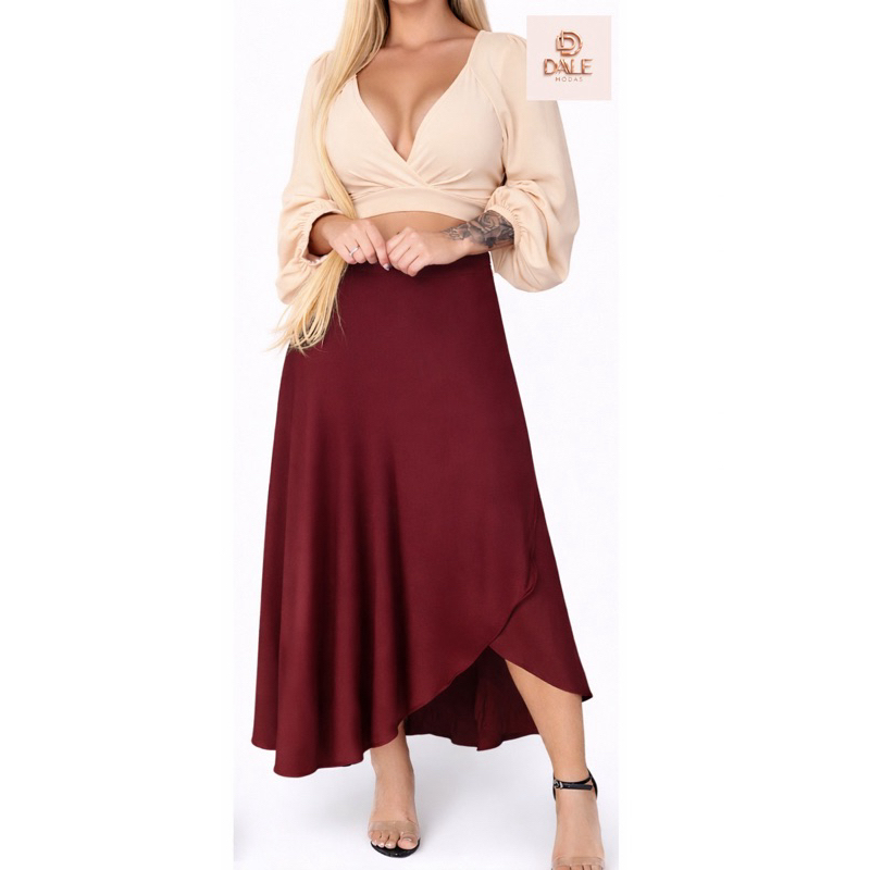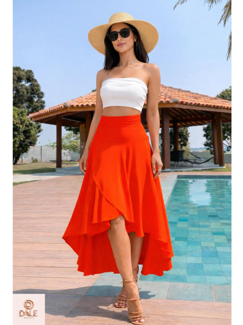 Saia Envelope Feminina Mídi Transpassada Multiformas de Amarrar Cintura Alta preta