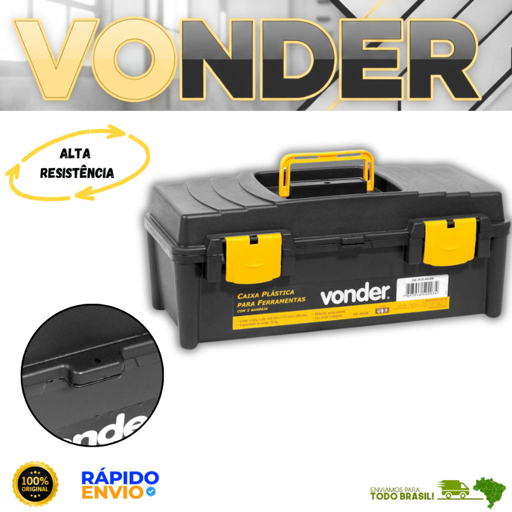 Caixa Plástica Para Ferramentas Vonder Com 01 Bandeja Polipropileno Organizar Armazenar Resistente