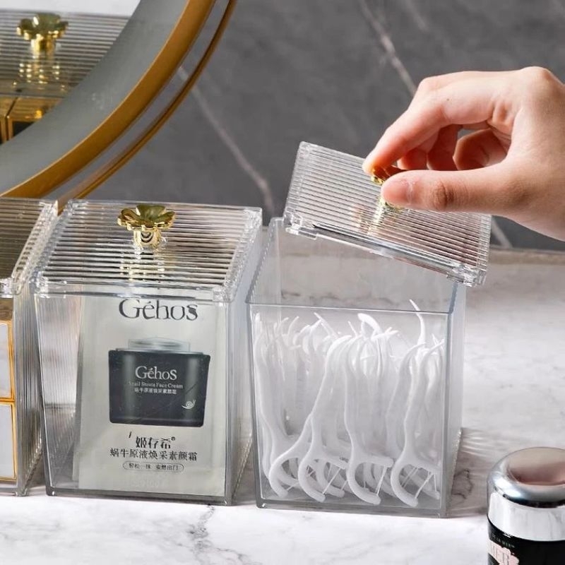 Porta Algodão Cotonete Multiuso Organizador Com Tampa HS55706 (1 Peça)