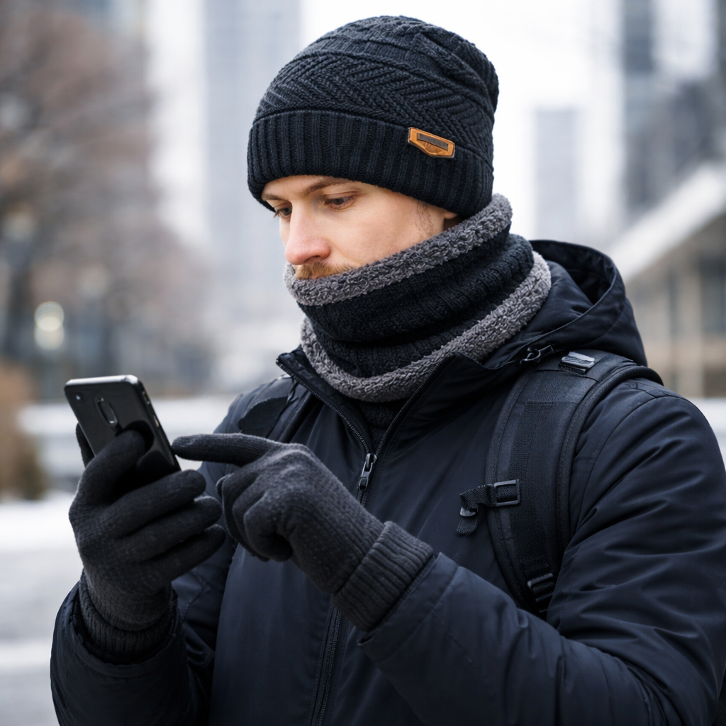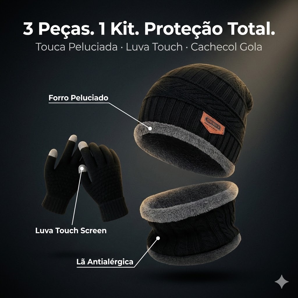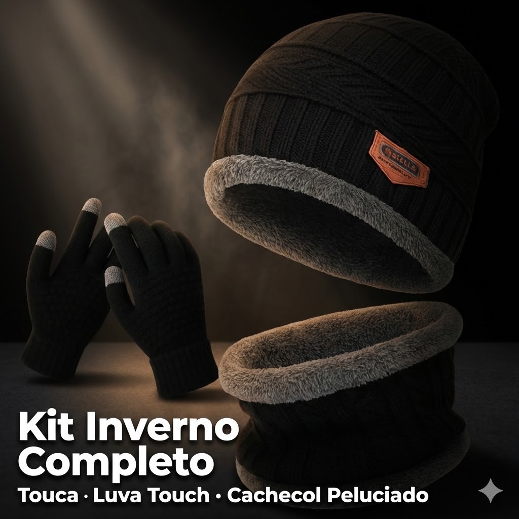 Kit Inverno Completo Touca Forrada + Luva Touch + Protetor de Pescoço Unissex