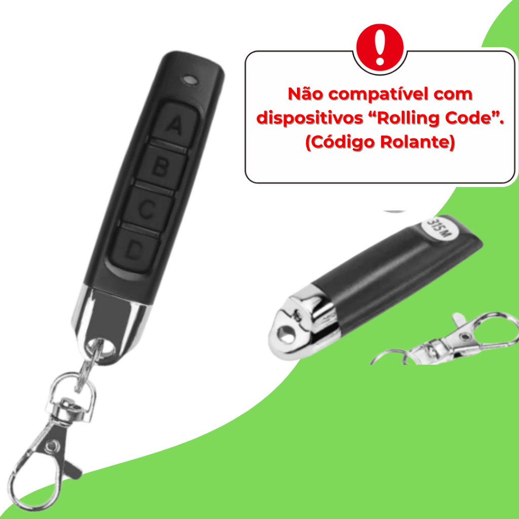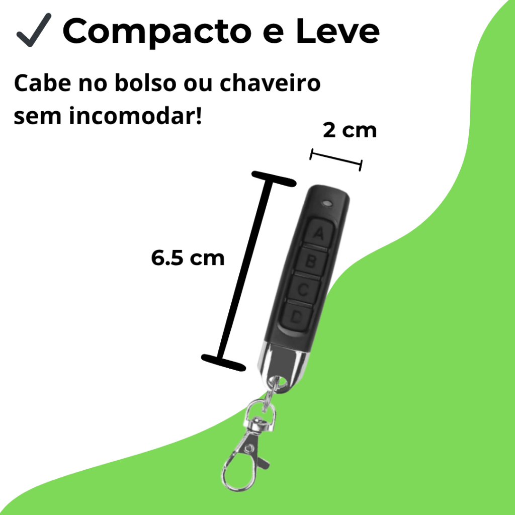 Controle de Portão 433 MHz Slim — 4 em 1, Universal
