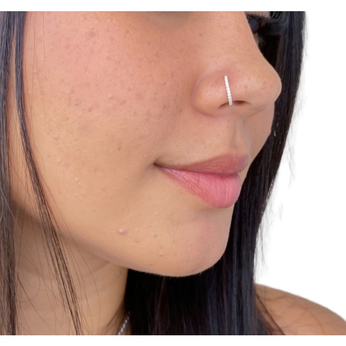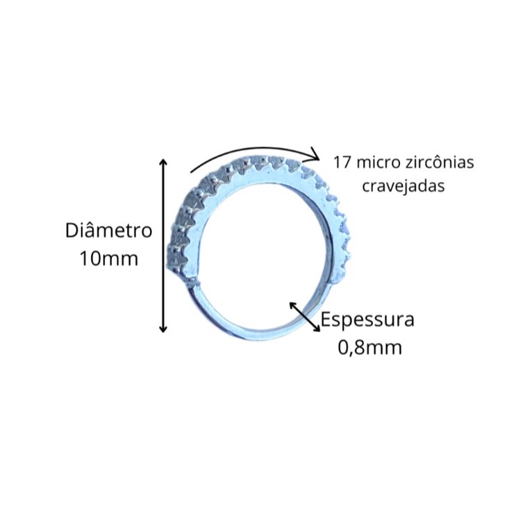 Piercing Cravejado Argola 10mm Prata 925 Pedras Zircônia
