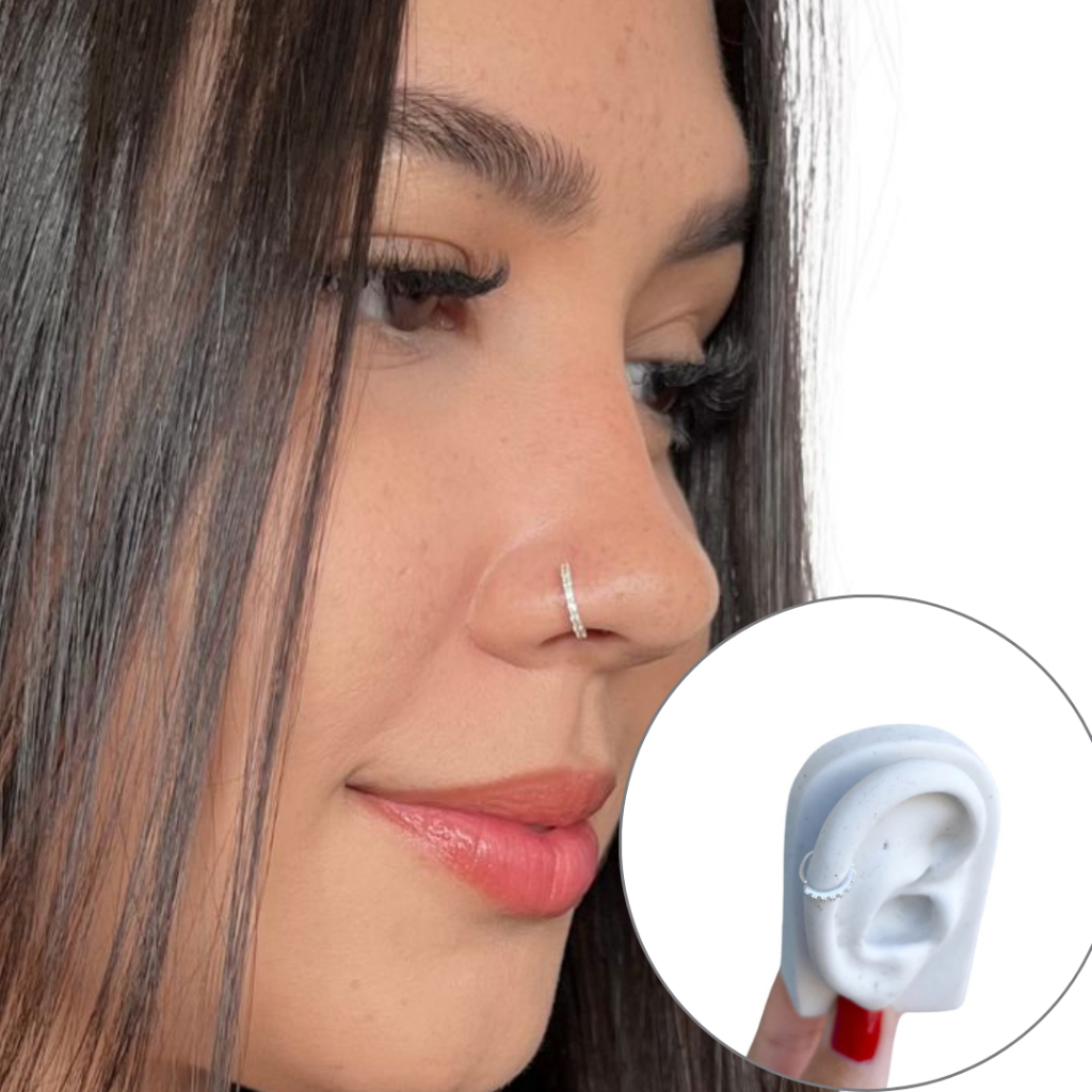 Piercing Nariz Helix 7mm Argola Cravejada Com 10 Pedras em Zircônia