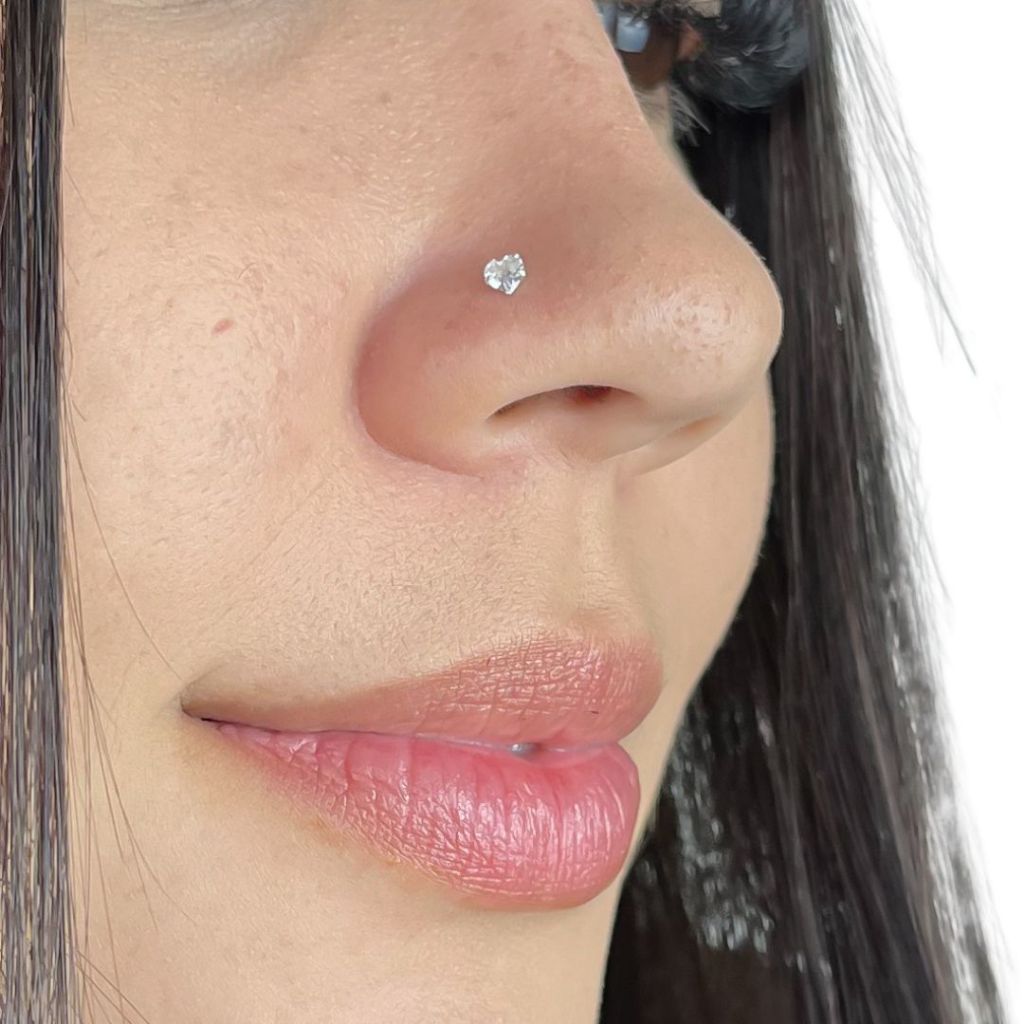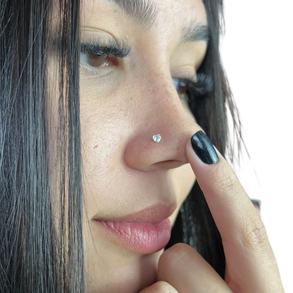 Piercing de Nariz Ponto de Luz Coração Prata 925 Zircônia Coração