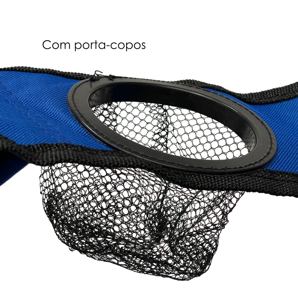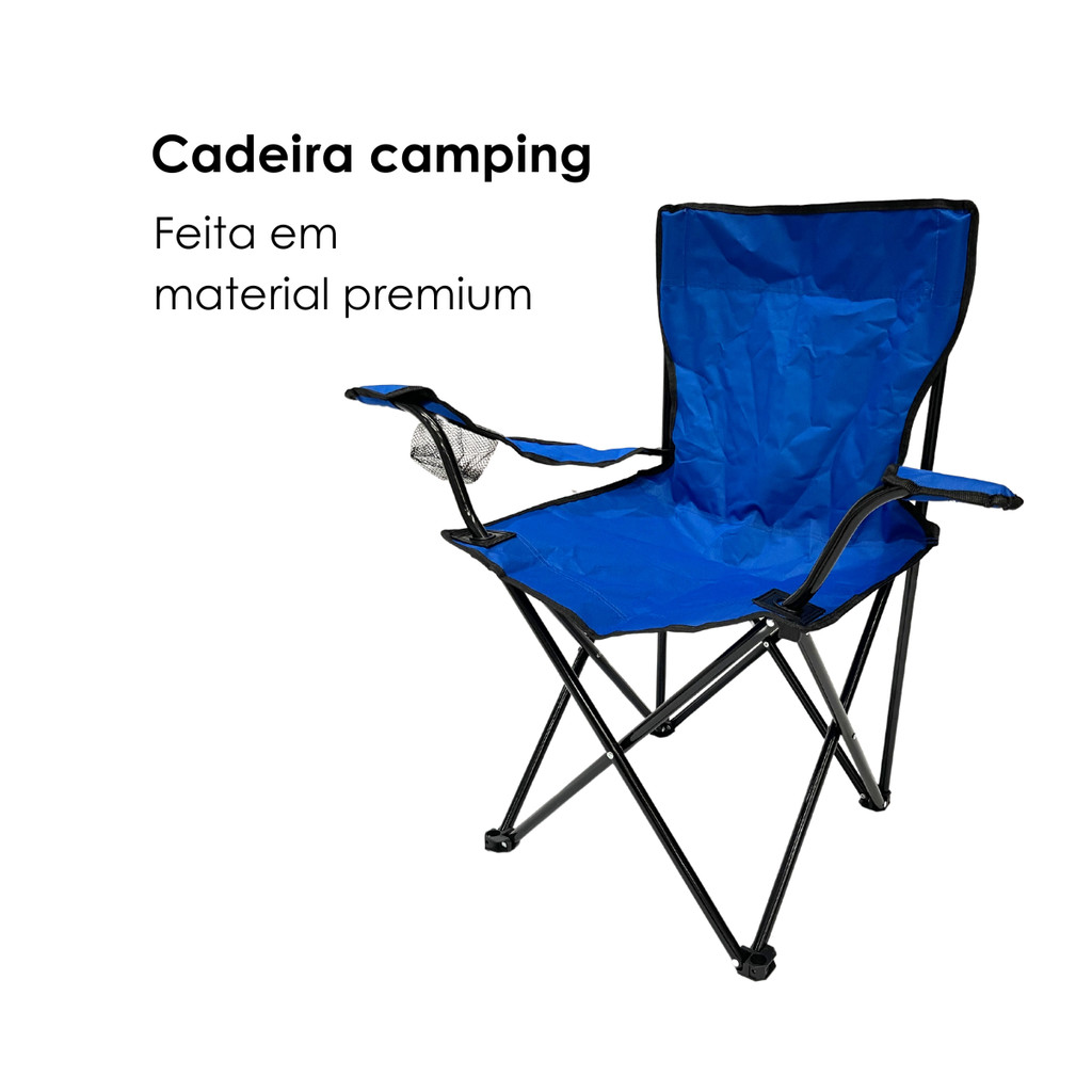 Cadeira Azul Camping Pesca Praia Dobrável Porta Copo C/ Bolsa Suporta até 150kg