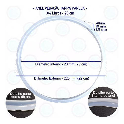 Borracha Vedação Panela Elétrica 3/4 Litros 20cm Universal