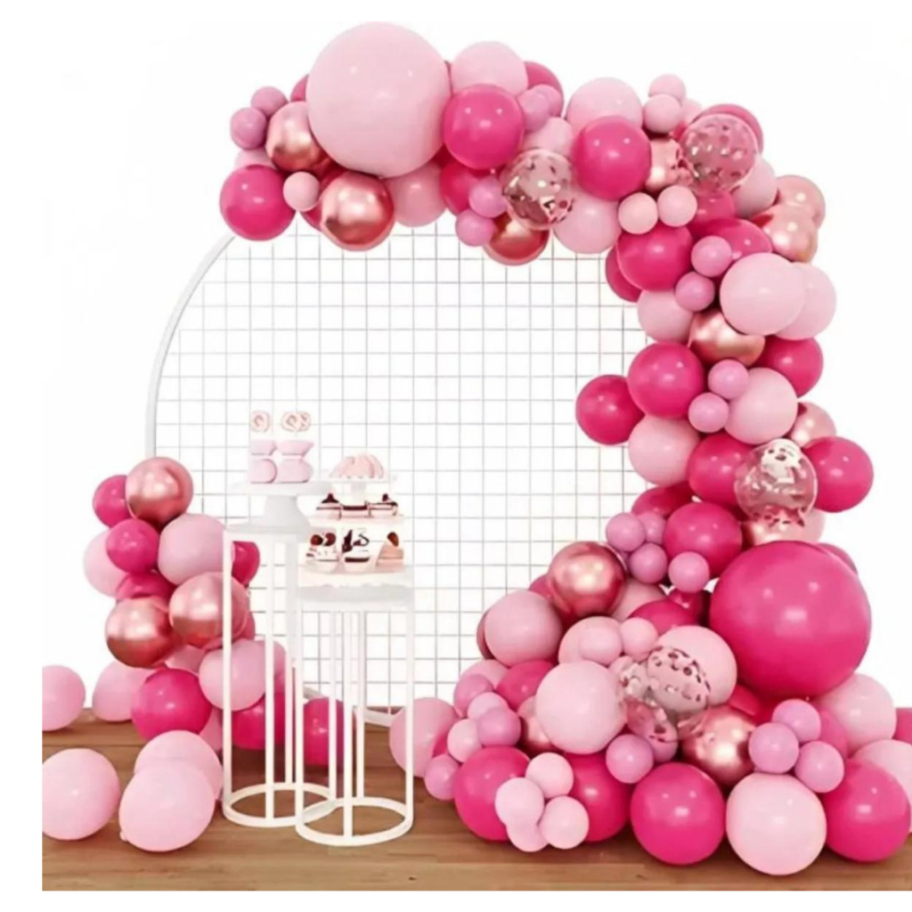 Kit 125 Balões Rosa Polegadas Branco Pink Cromado Balão Bexiga Liso/Cromado Festa Aniversário+Fita