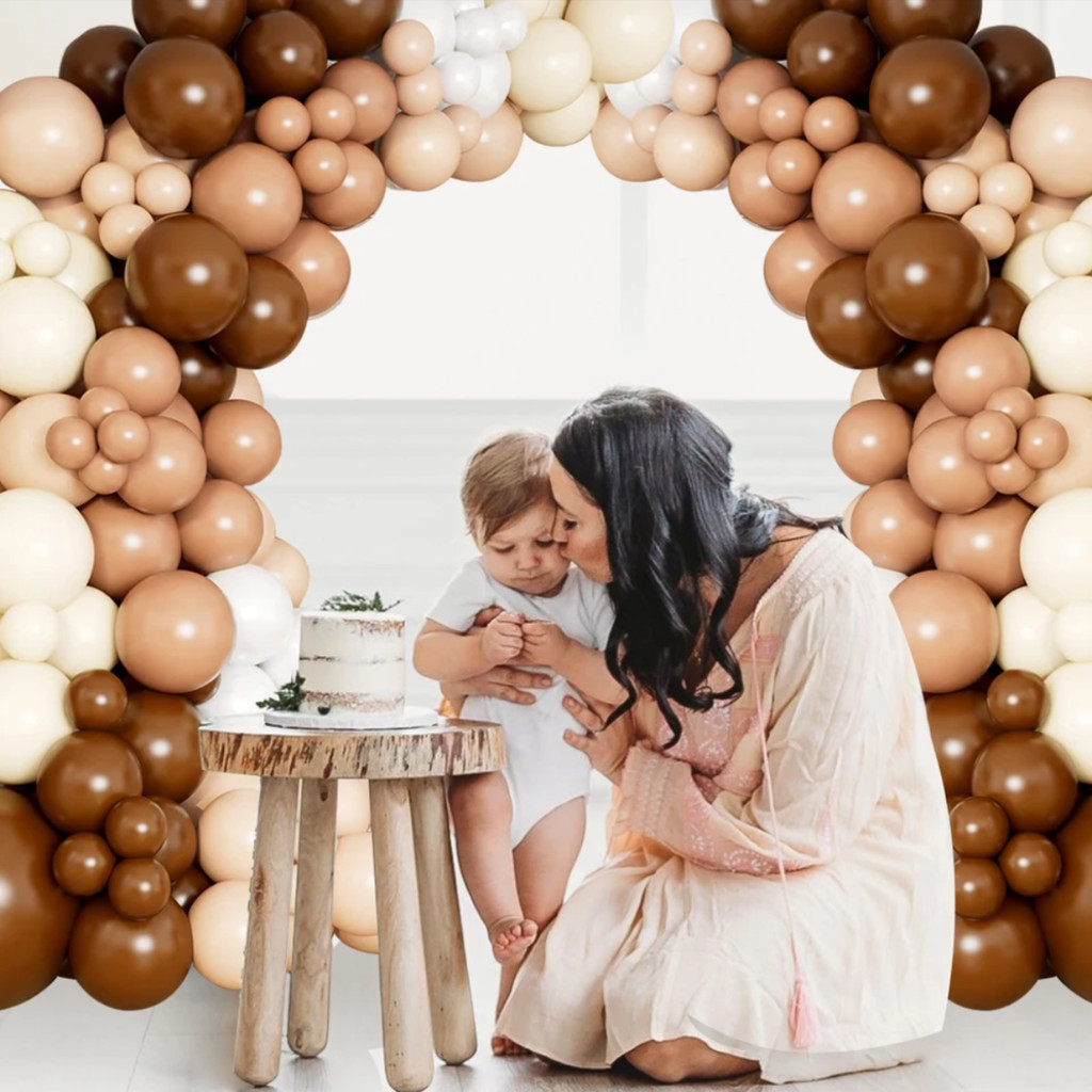 Kit 100 Balão Marrom Bexiga Bege Branco Arco Desconstruido+Fita Bexiga Decoração Festa Aniversario