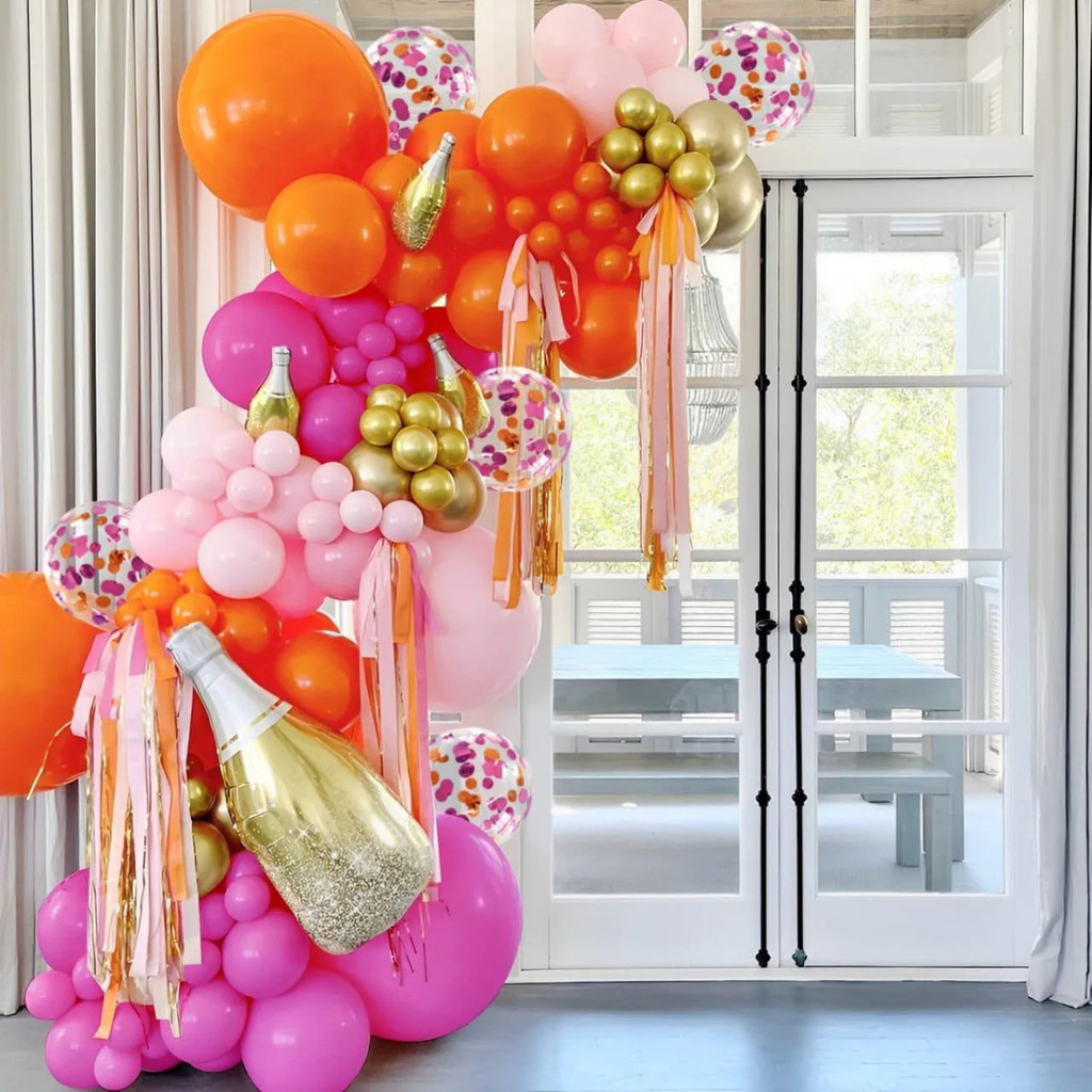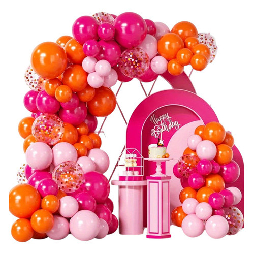 Kit 115 Balões Rosa Pink Decoração Montagem Arco Desconstruido Balão Rosa Laranja Bexiga Festa+ Fita