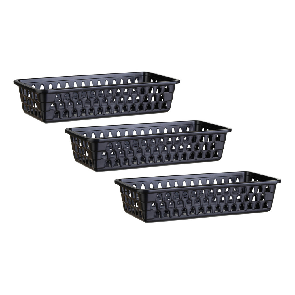 Kit 03 Cesto Organizador Multiuso Lavanderia Preto 28x12x6