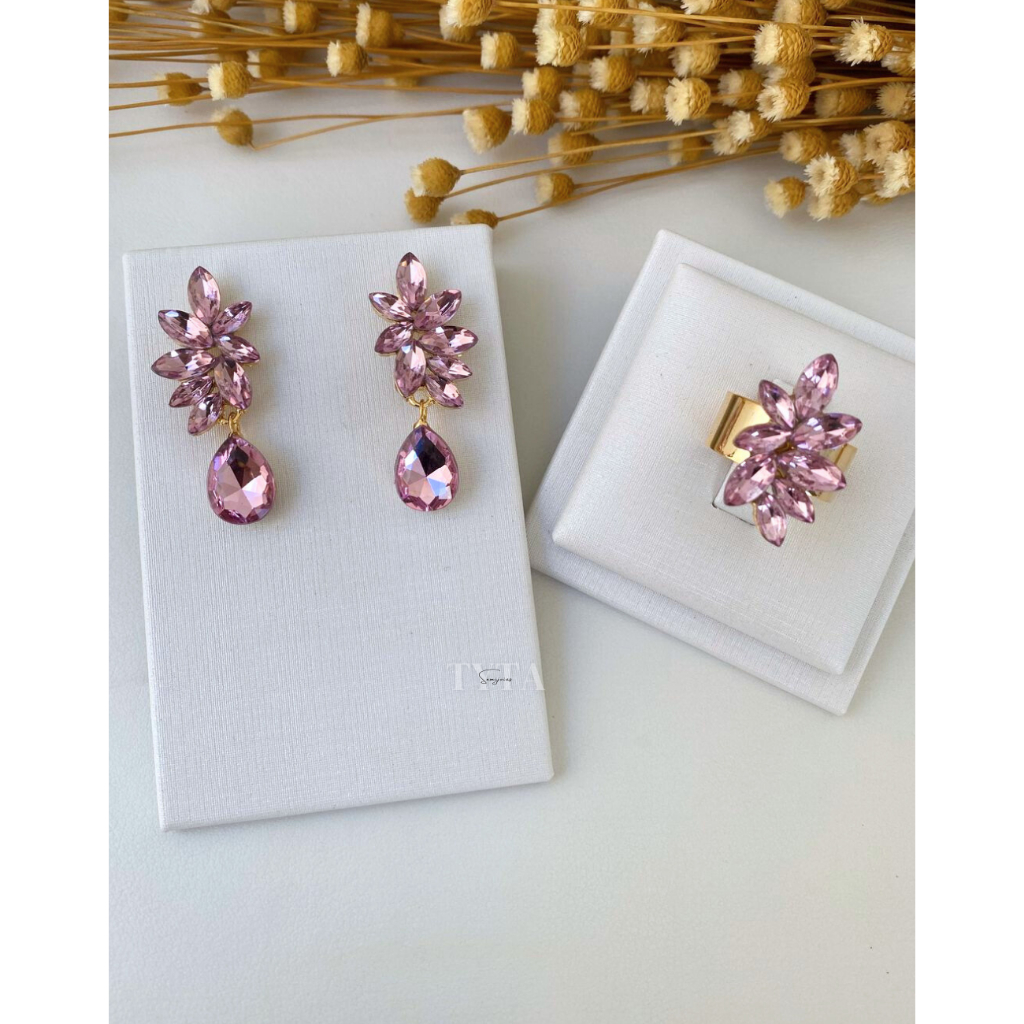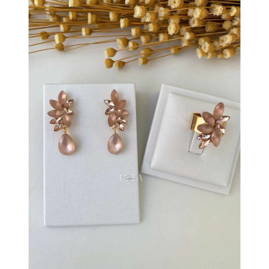 Brinco e anel rosé com banho de ouro para madrinhas / brinco e anel rosa bebê para madrinhas brinco rosa anelrosa lorena