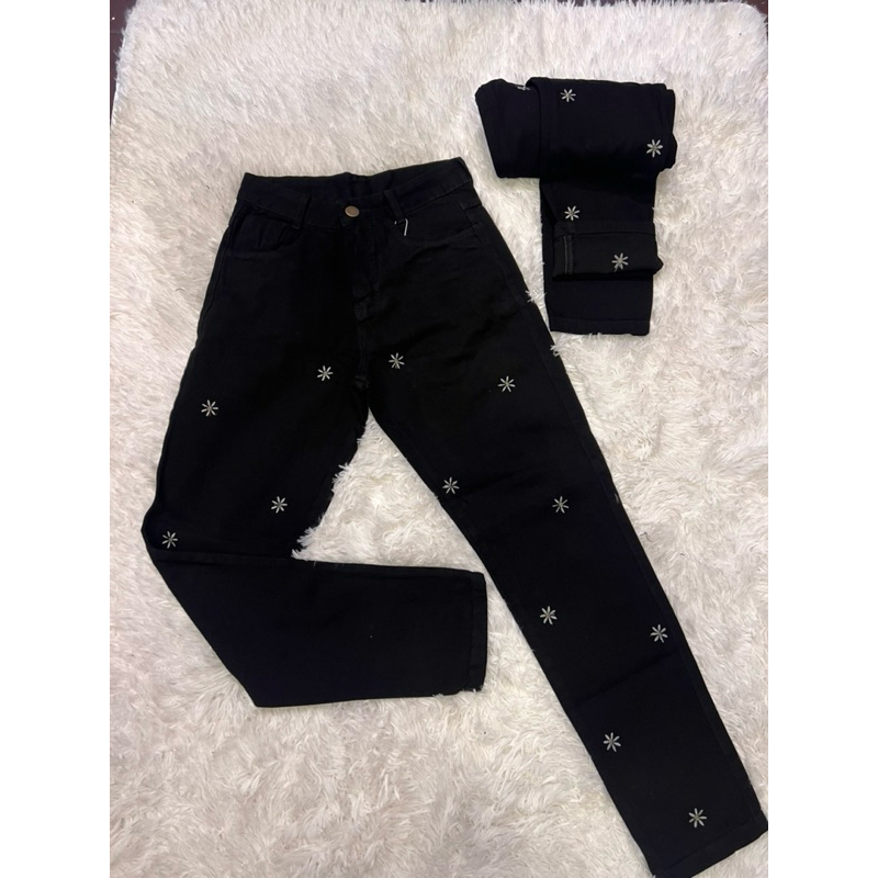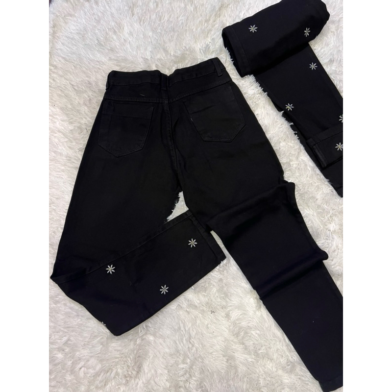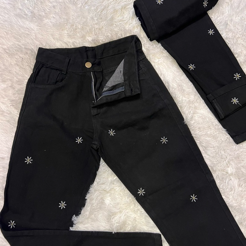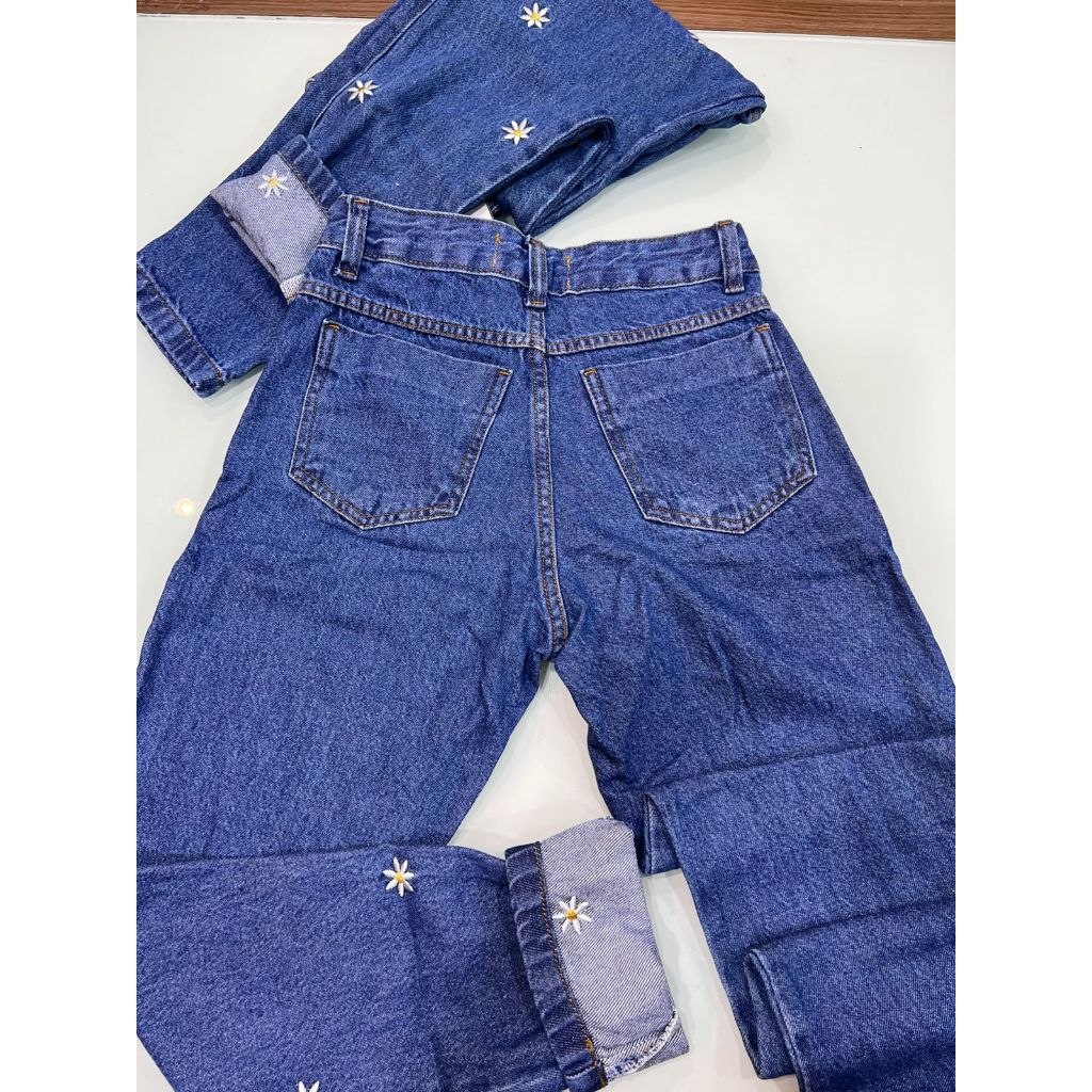 Calça moon jeans feminina bordad com detalhes de flores margaridas
