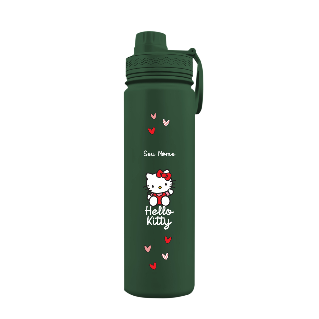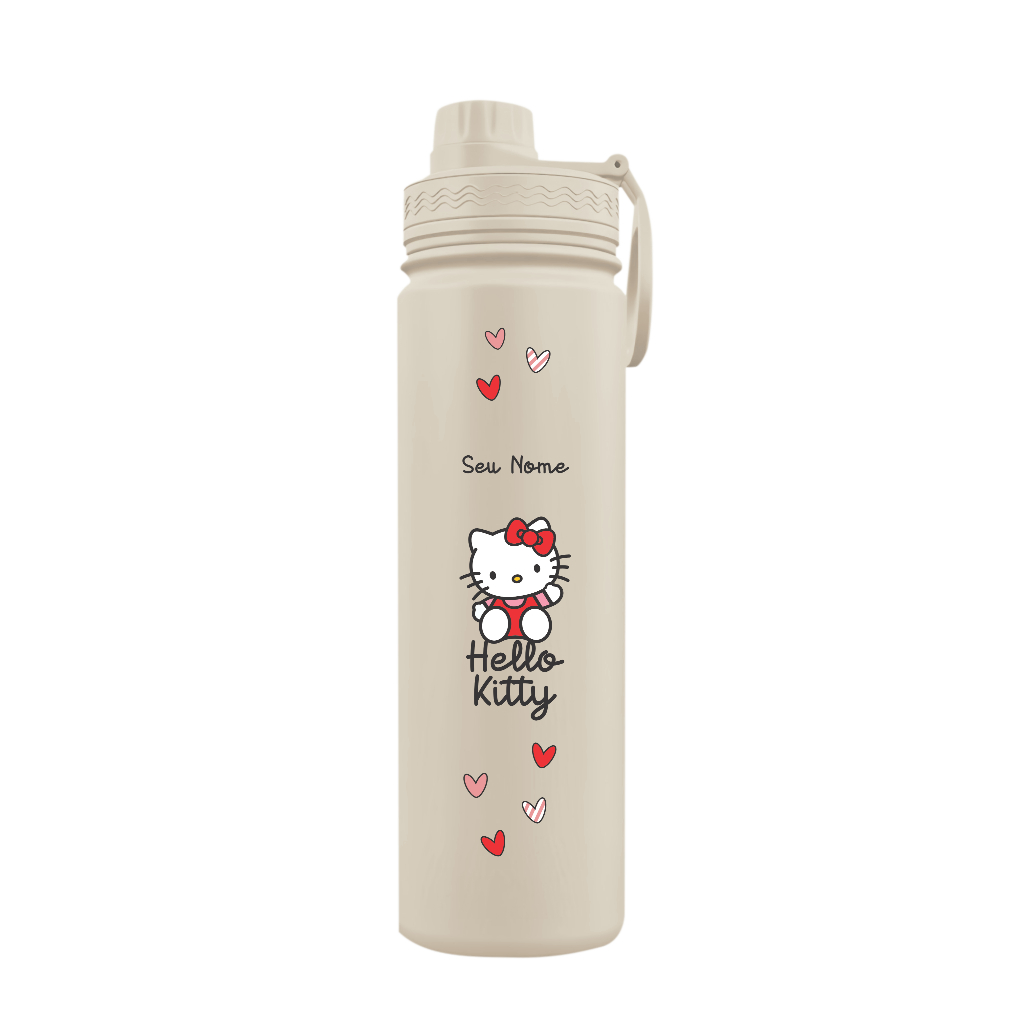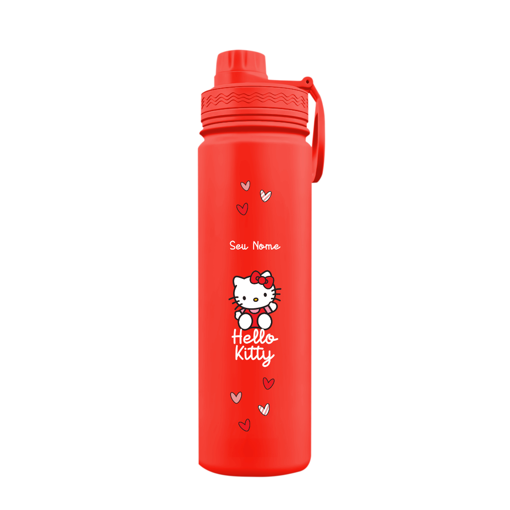 Garrafa Térmica Fresh Com Alça Personalizada com Seu Nome - Hello Kitty Corações