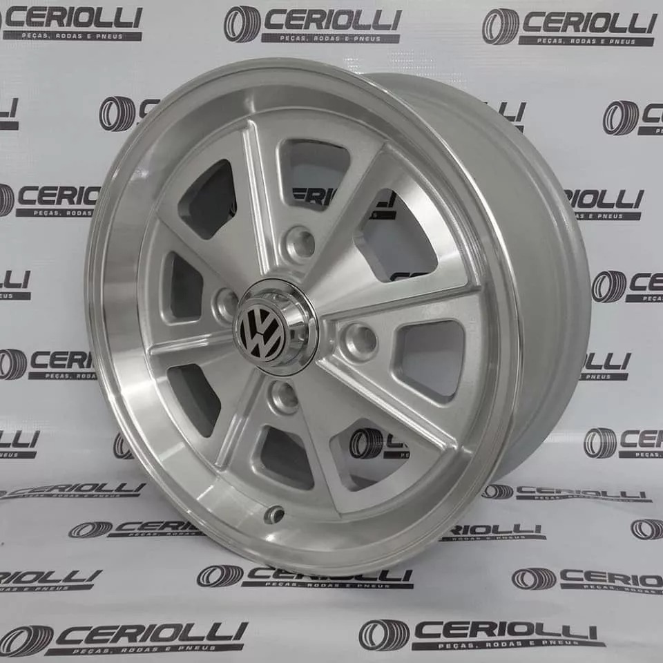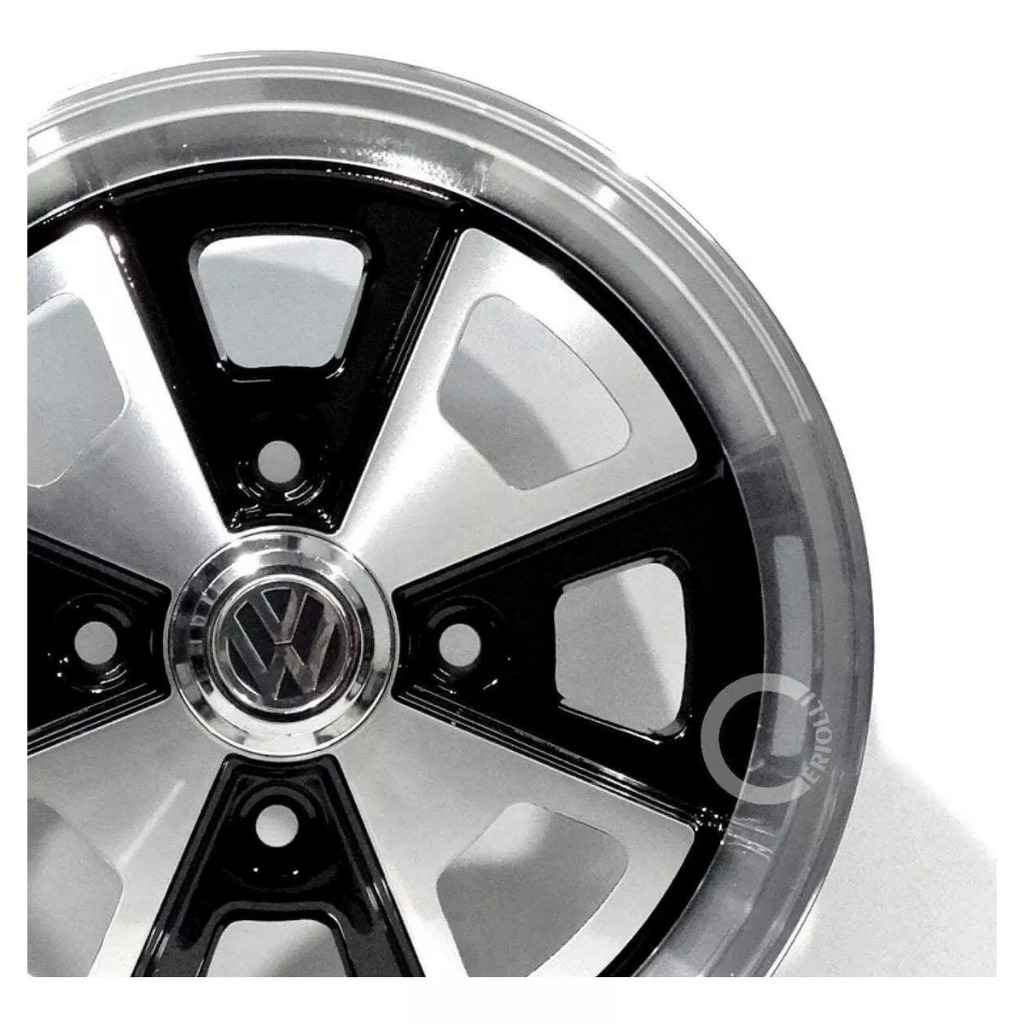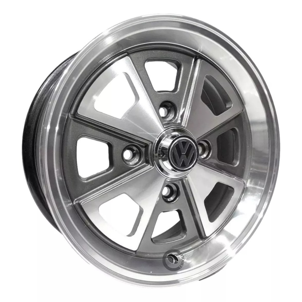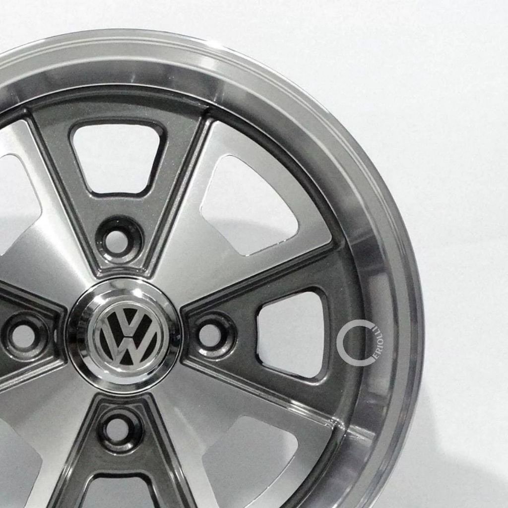 Kit 4 Rodas Aro 15 Fusca Vw Porsche 4x130 Grafite Preto Prata Diamantado Parafusos e Bicos de Brinde